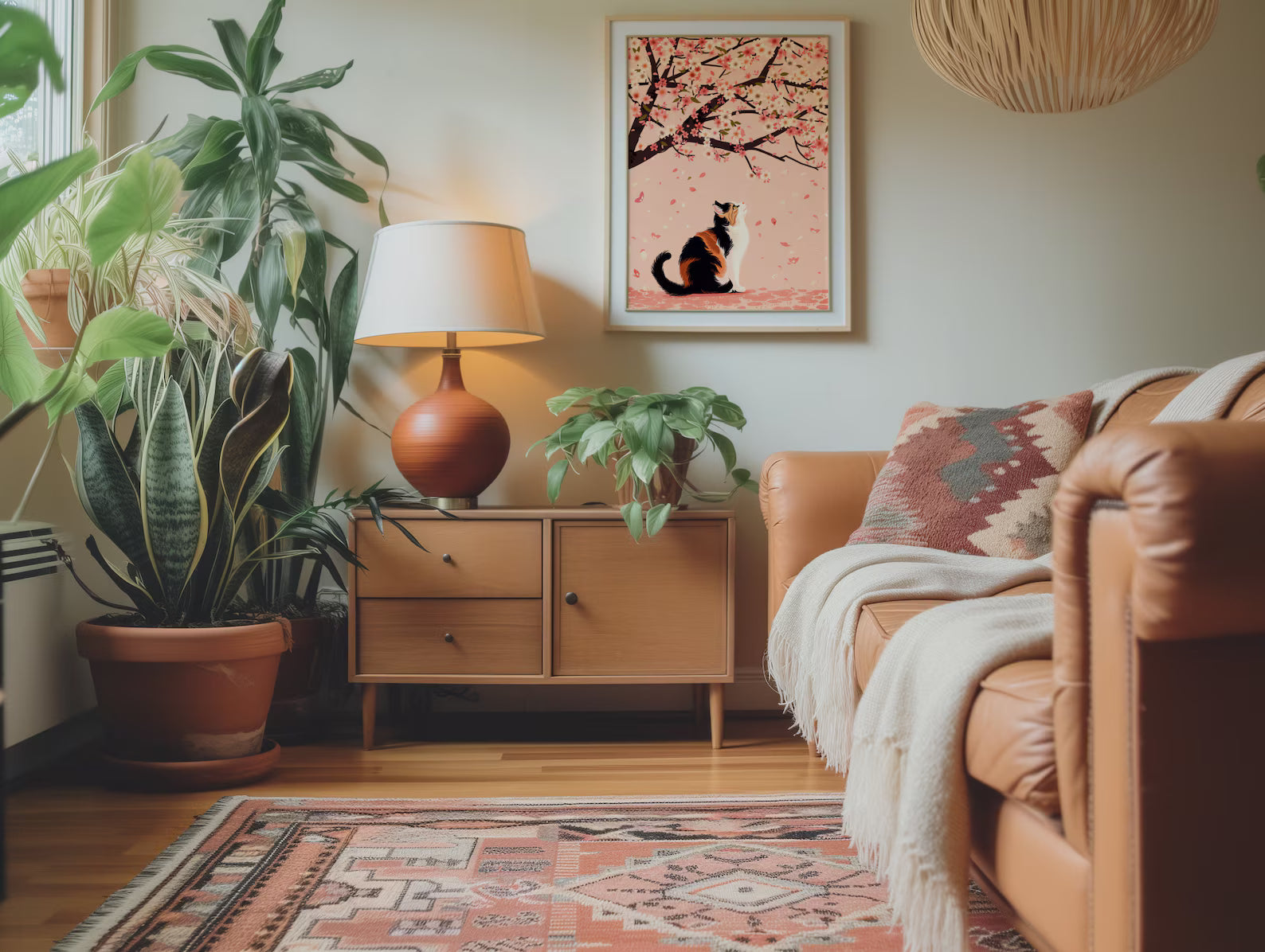 Bring a touch of springtime charm to your space with this delightful digital download of a calico cat gazing up at blooming cherry blossoms on a soft pastel pink background. Perfect for cat lovers and fans of Japanese-inspired artwork, this illustration captures the whimsical beauty of a serene moment under a flowering cherry blossom tree.
