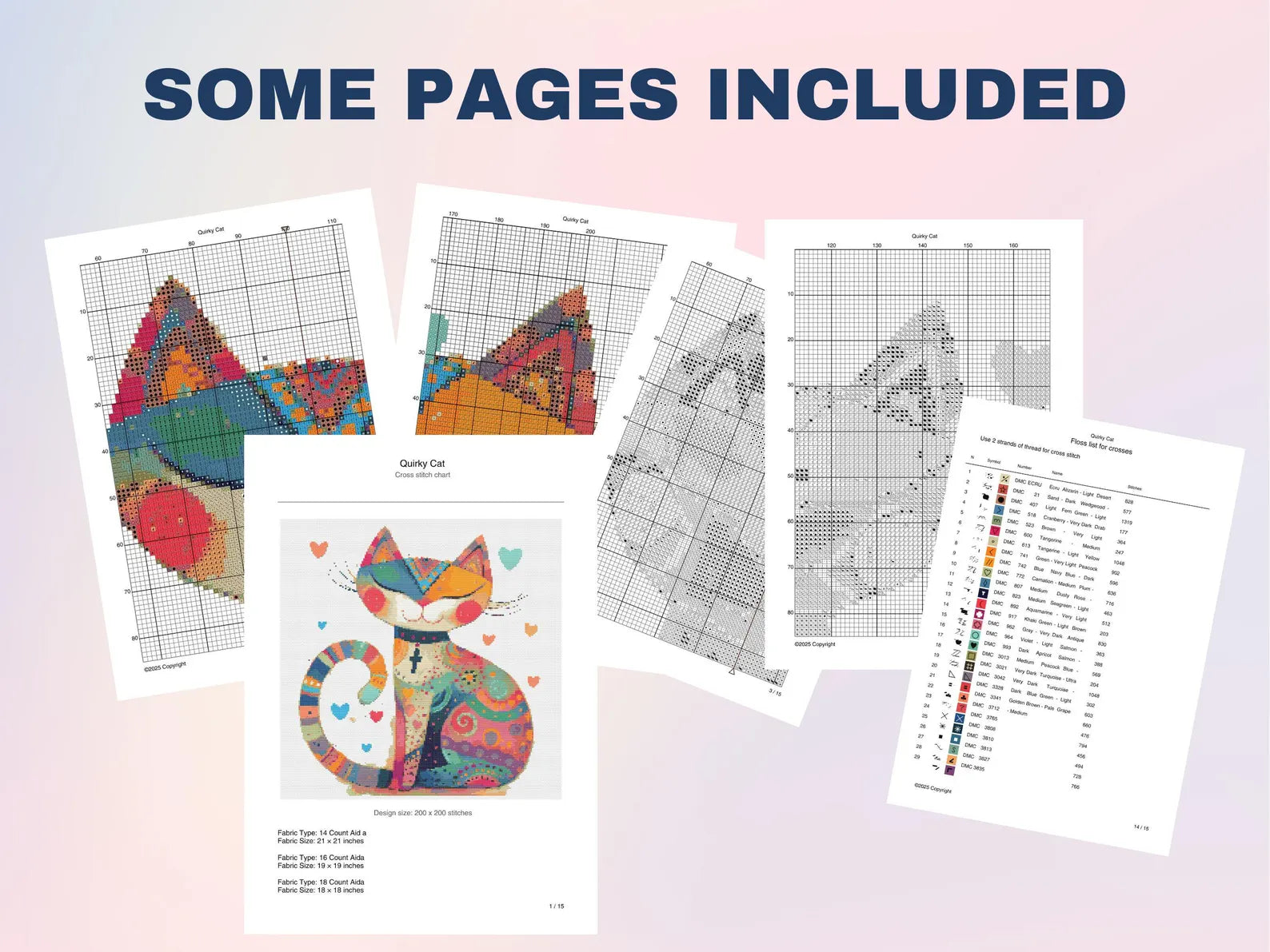 Cat Cross Stitch Pattern PDF, Quirky Cat, Cute Cat Pattern, Cat Lover Gift Pattern, Instant Download, X Cross Stitch Pattern, Stitch Cats