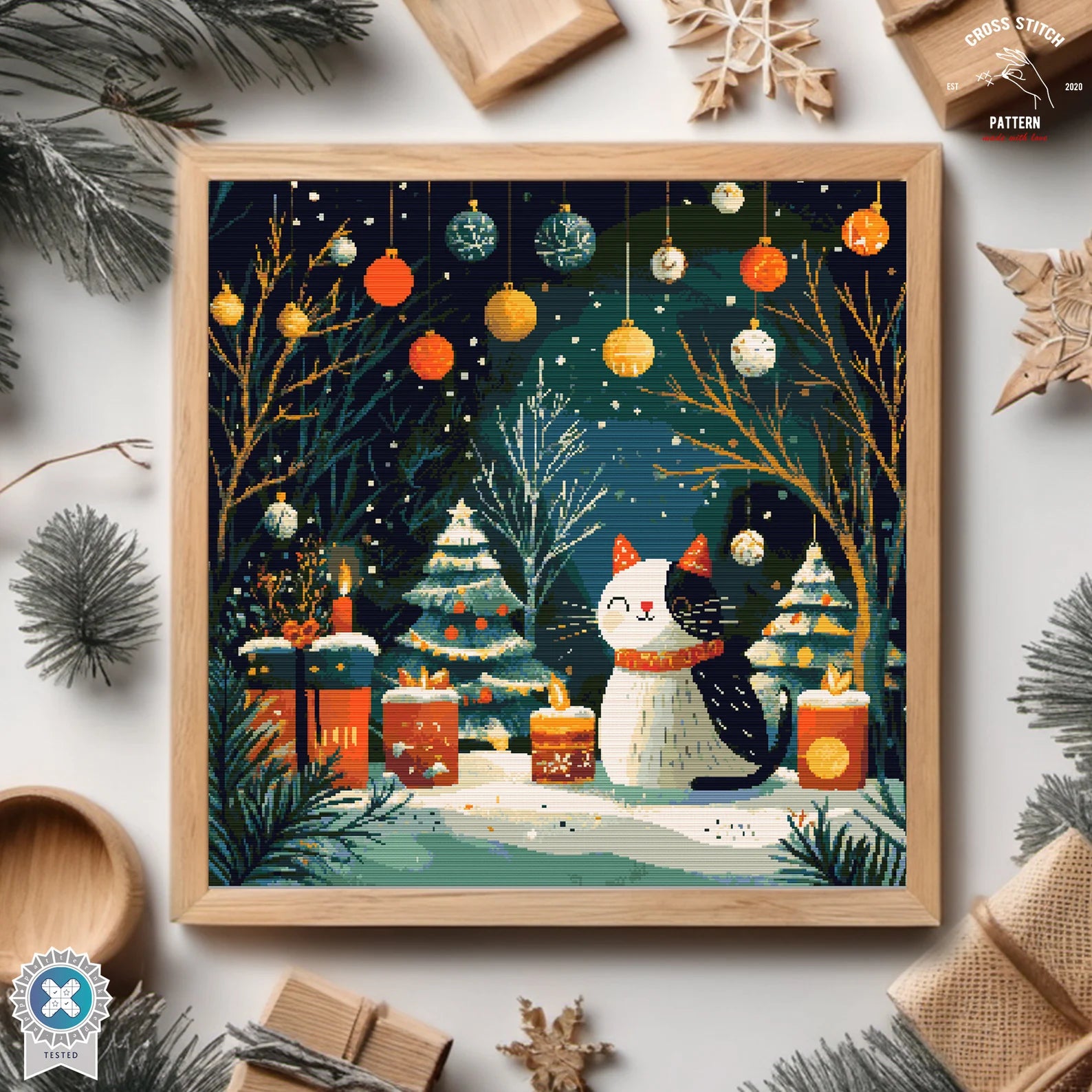 Christmas cross stitch pattern Advent calendar embroidery Cat lover's Christmas decor Snow Globe cross stitch Christmas tree ornament decor