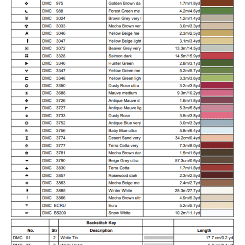 DMC thread key with symbols, floss numbers and an easy-to-follow legend.
