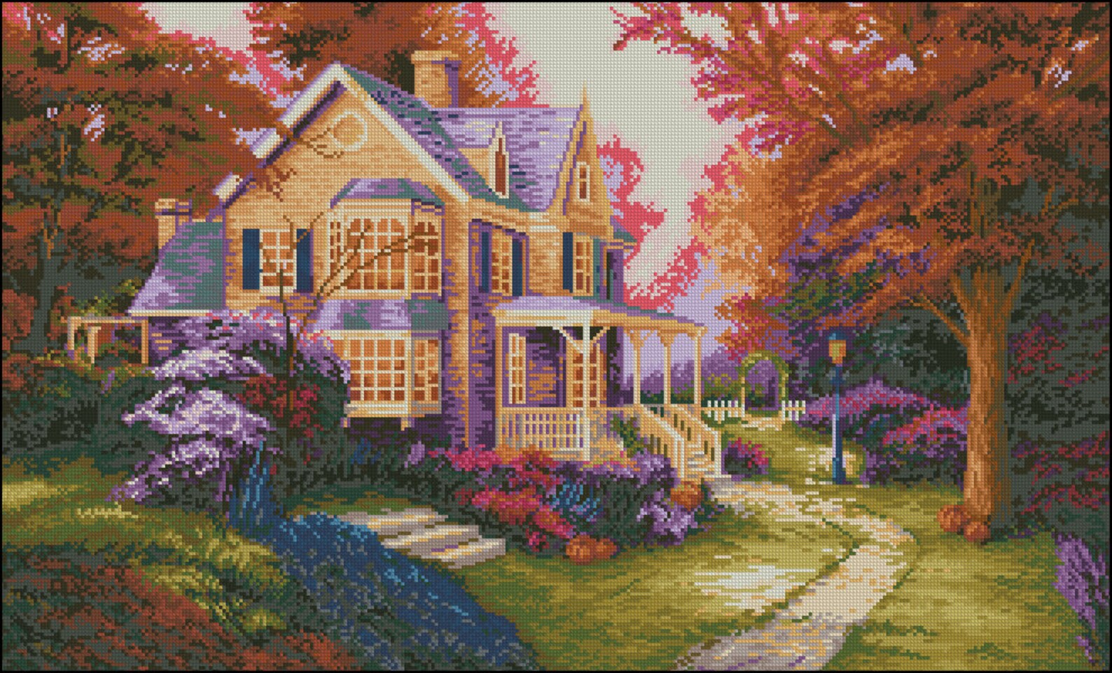 Cross stitch pattern Flowering House, floral cross stitch chart, nature embroidery, summer cross stitch, digital PDF file,house cross stitch