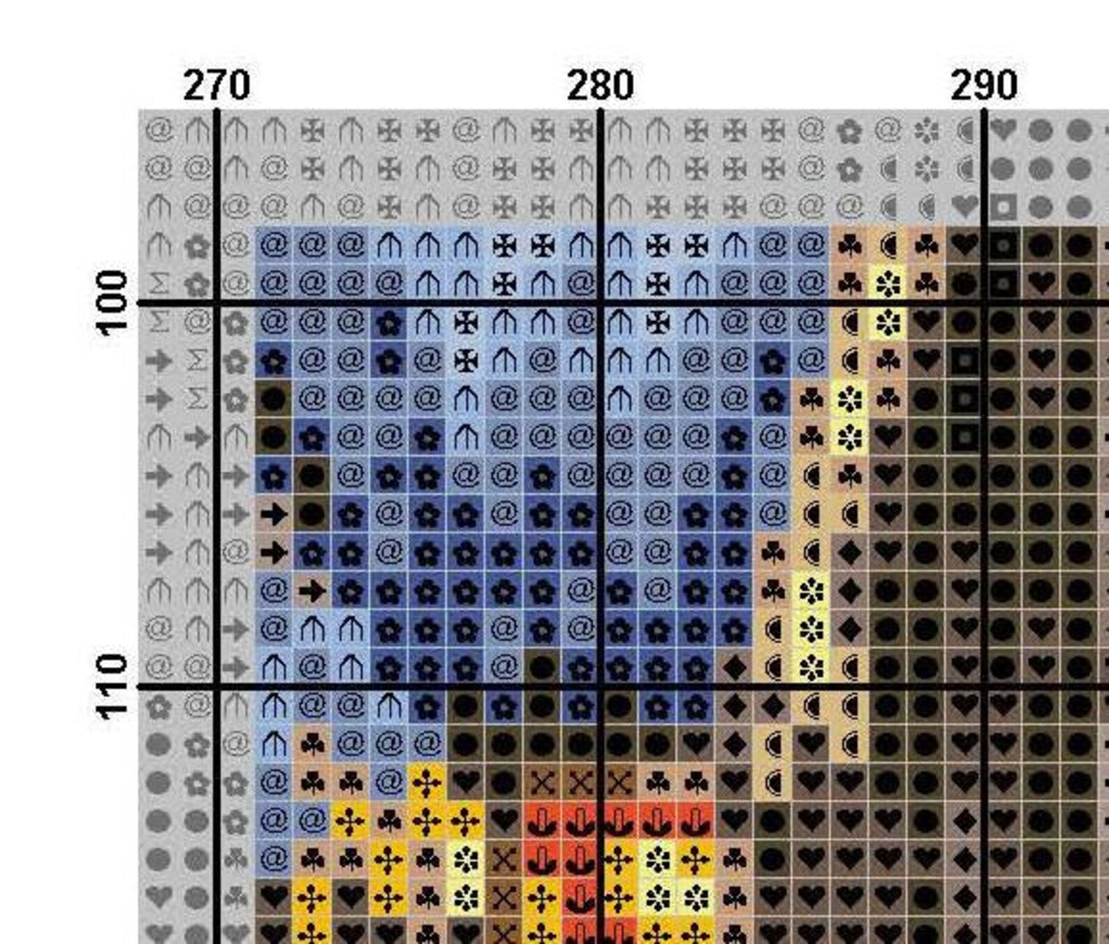 Each PDF file is divided into pages and ready for printing, contains a chart with information about the pattern, symbol key and a list of thread colors.
