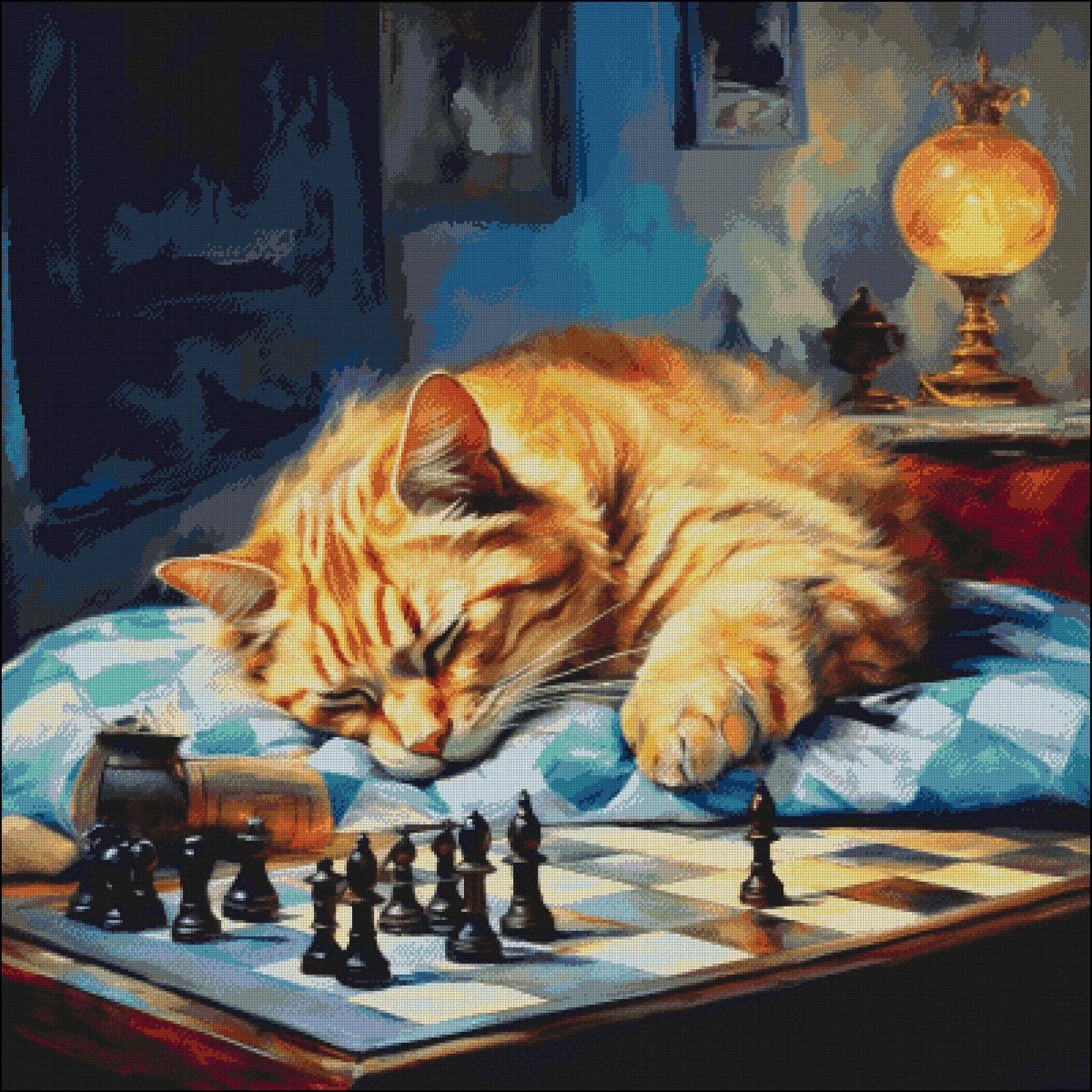 Cross Stitch Pattern PDF, The Sleeping Cat, needlepoint chart, easy cross stitch, animal, large pattern