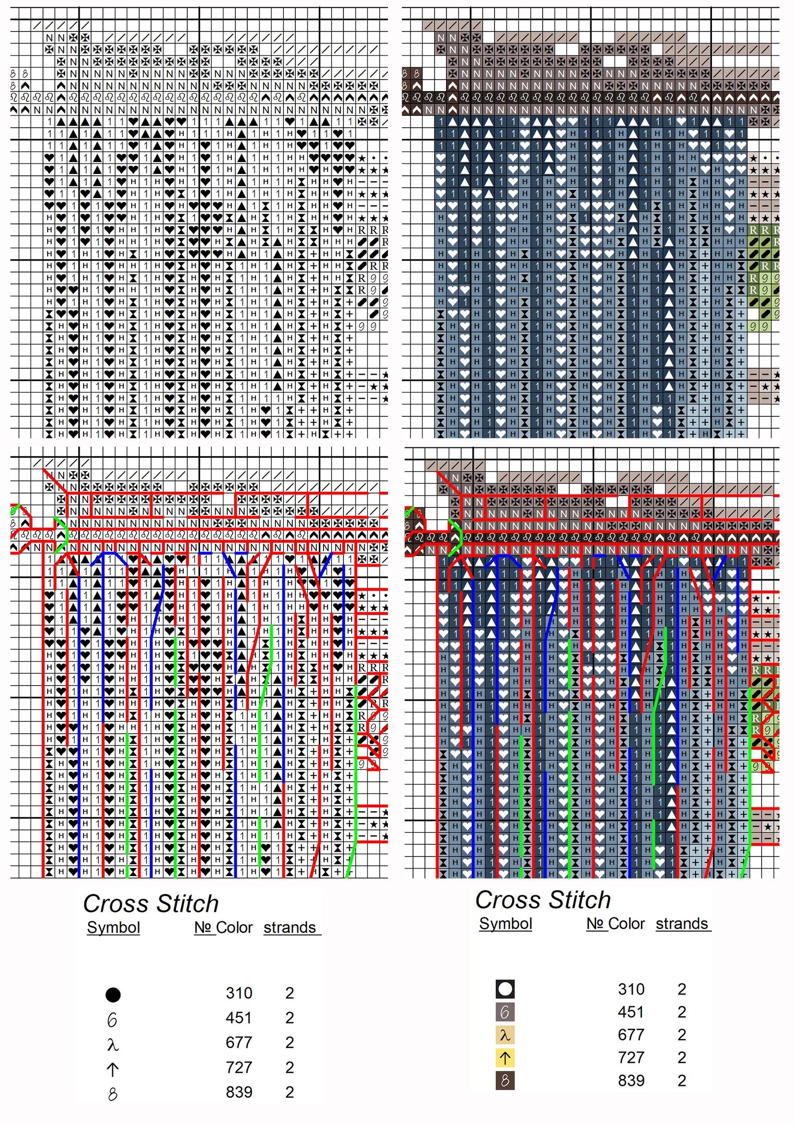 All the patterns are for personal use only. The pattern for traditional cross-stitch
