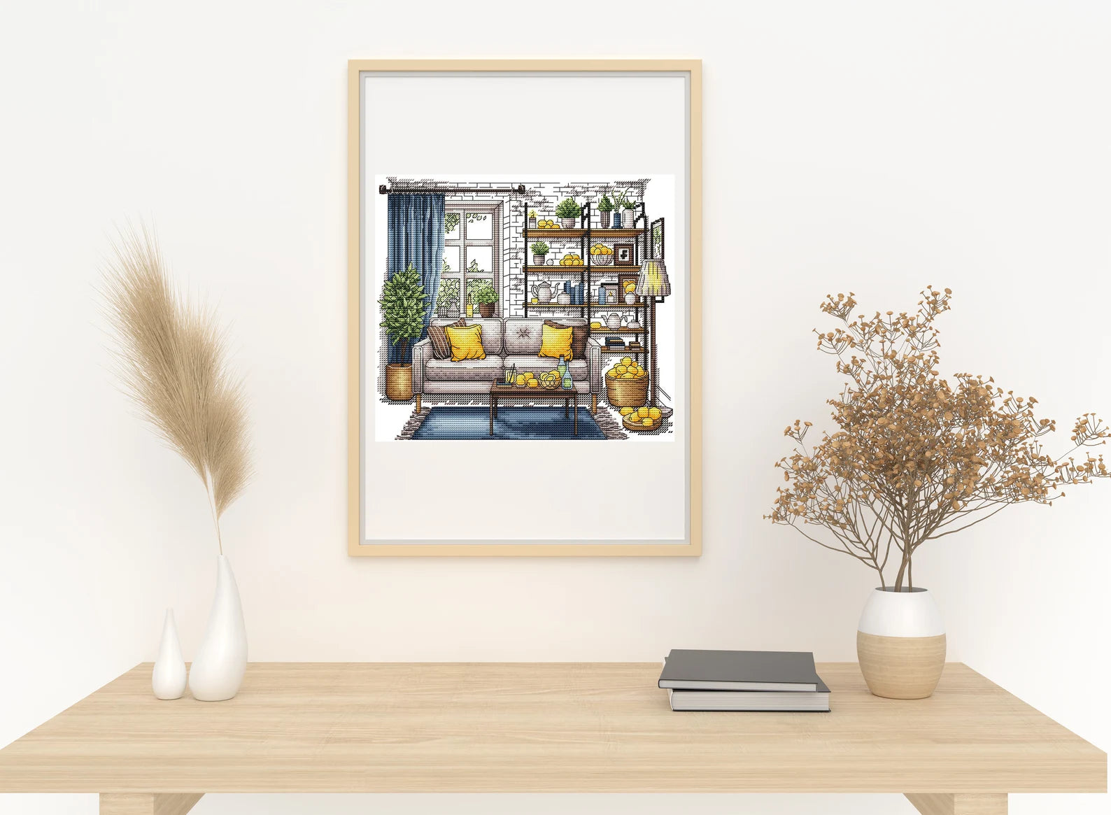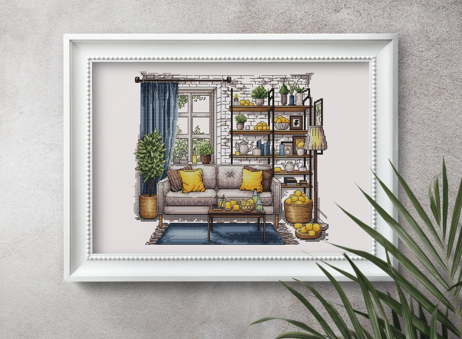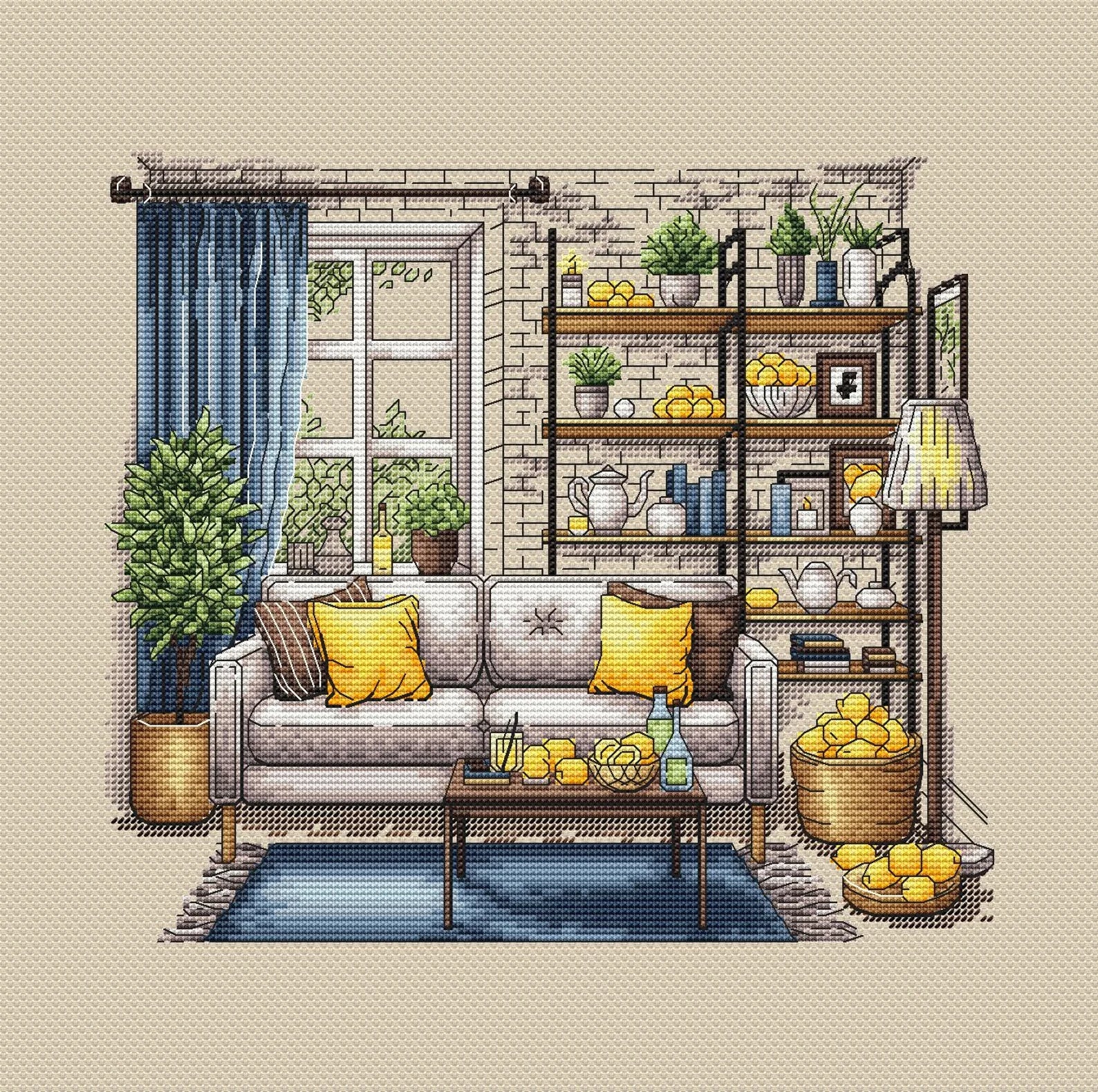 Cross Stitch Patterns, Lemons cross pattern, Interior embroidery, Decorative embroidery, Lemons room embroidery