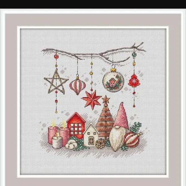 Scandinavian Christmas Cross Stitch Pattern Gnome Cross Stitch Pattern Christmas Baubles Cross Stitch PDF Pattern Instant Download