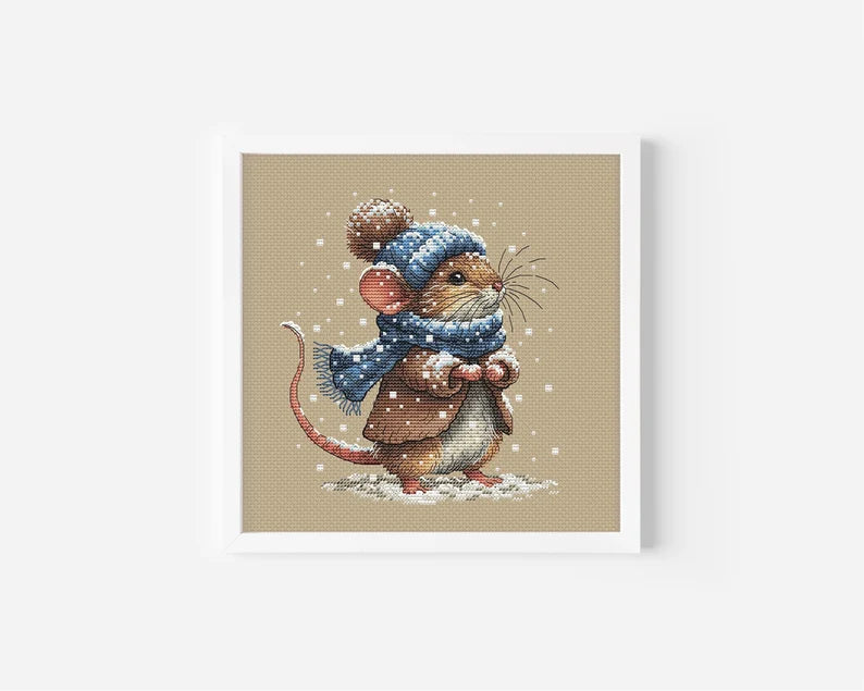Winter Mouse Snowy Animal Cross Stitch Pattern PDF Downloadable Needlework Chart Digital Download