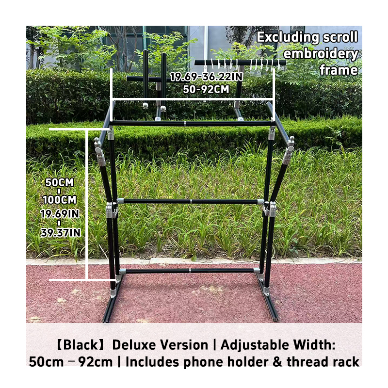 Deluxe Version | Adjustable Width: 50cm–92cm | Includes phone holder & thread rack