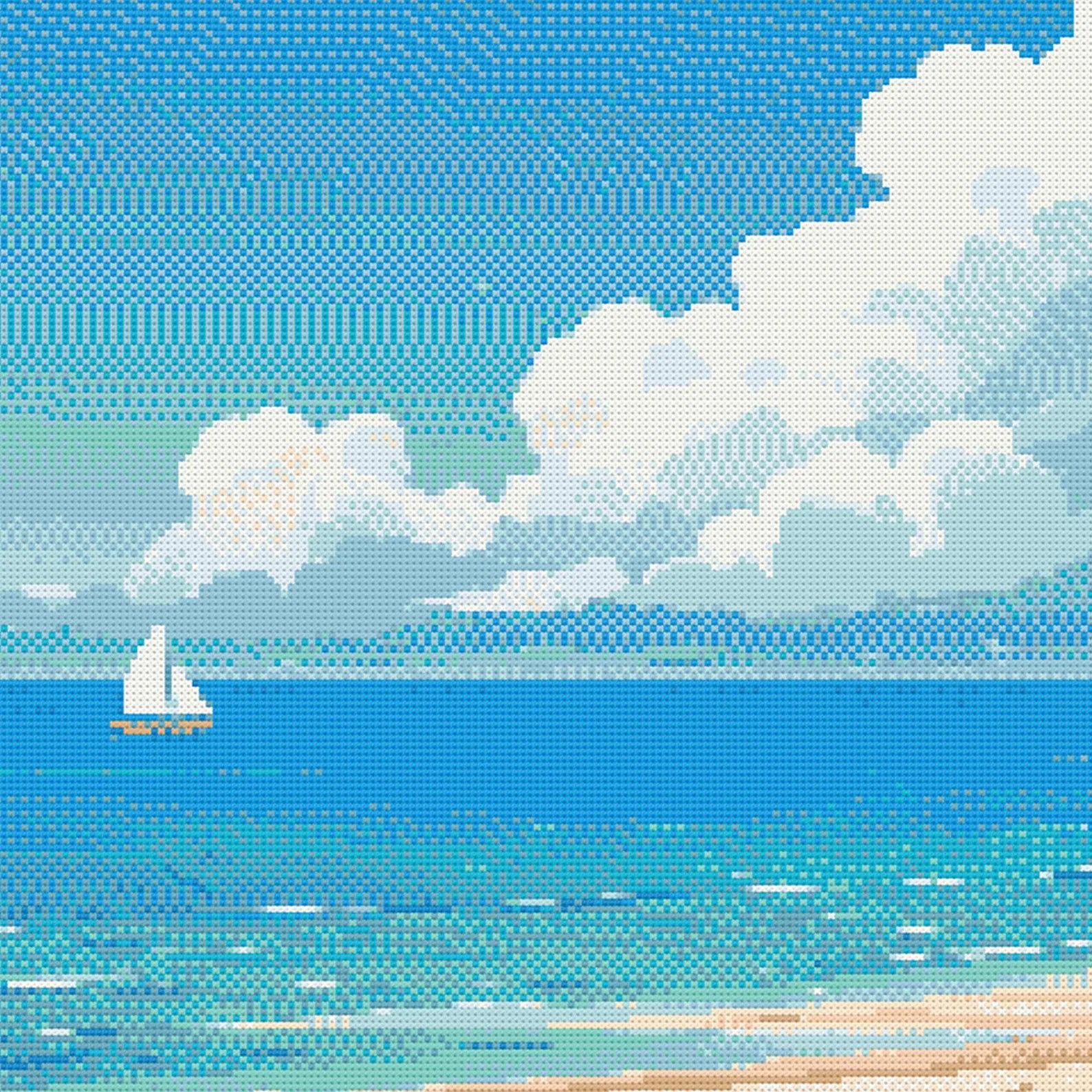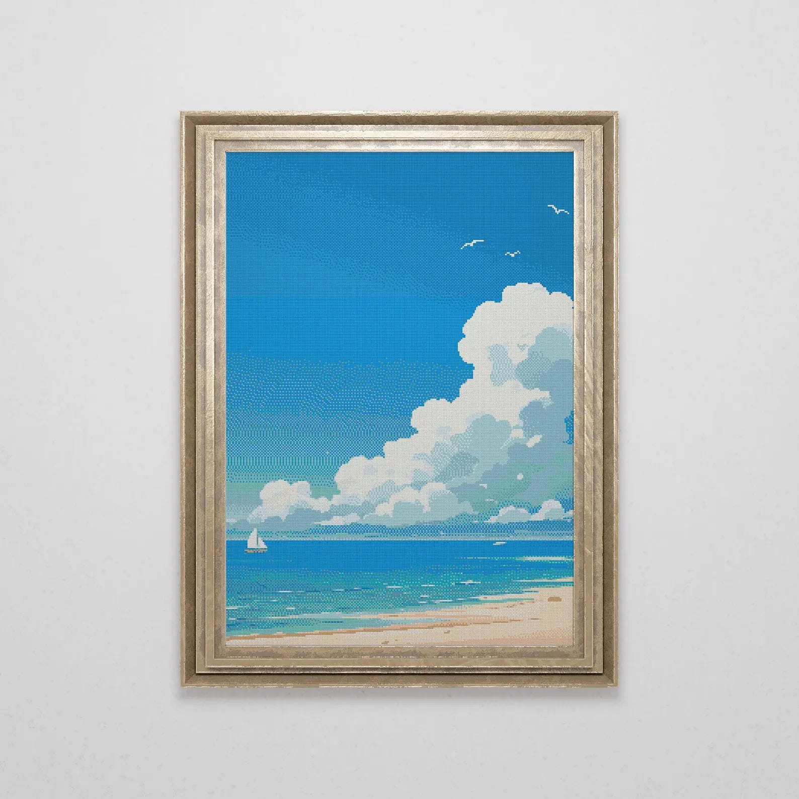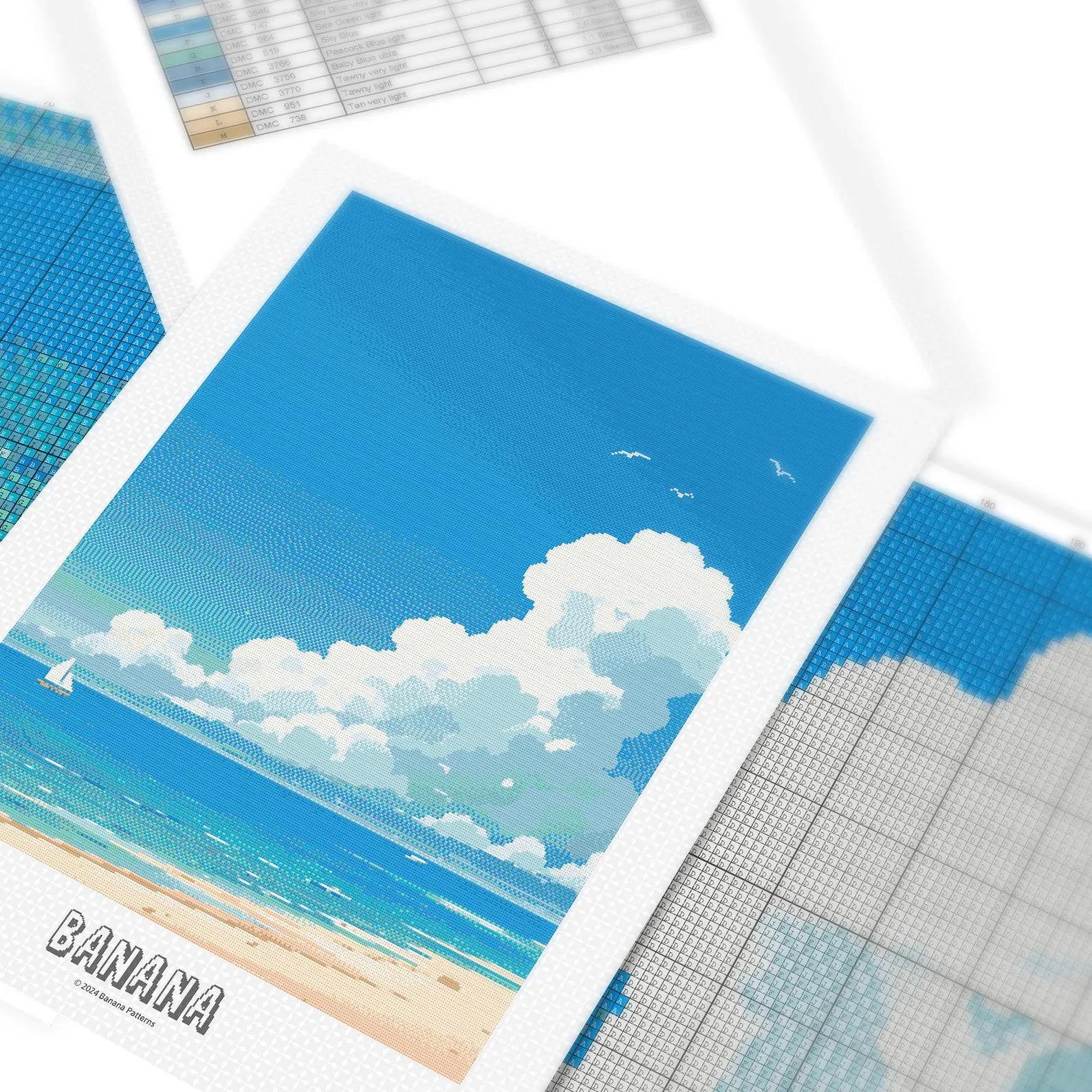 A Day at the Beach Cross Stitch Pattern | Ocean Landscape Cross Stitch Chart Download | Nature Cross Stitch | Summer Cross Stitch PDF