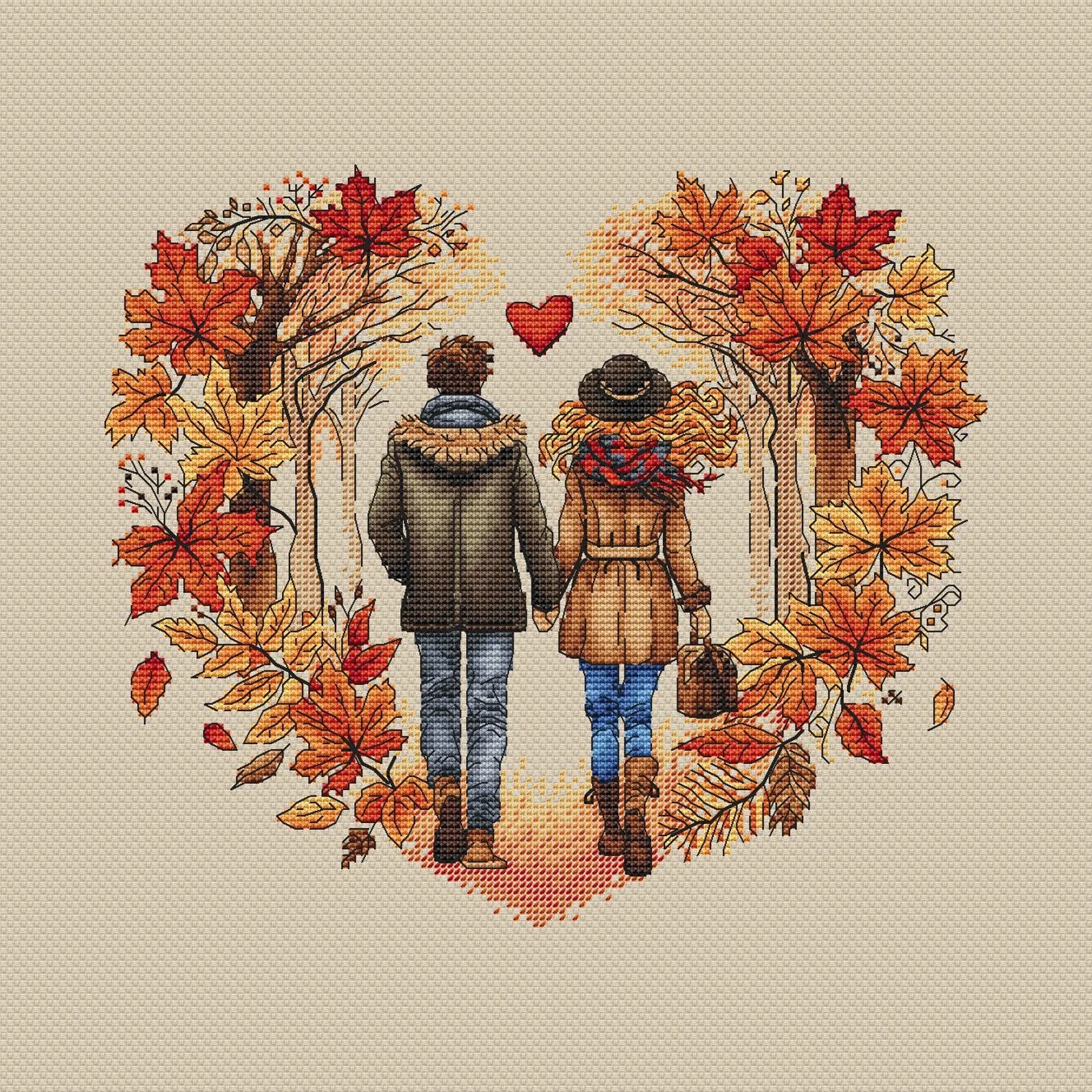 Autumn Cross Stitch Pattern PDF, Autumn Leaves Embroidery, Funny Gift, Embroidery Design Digital File, Autumn love Hand Embroidery