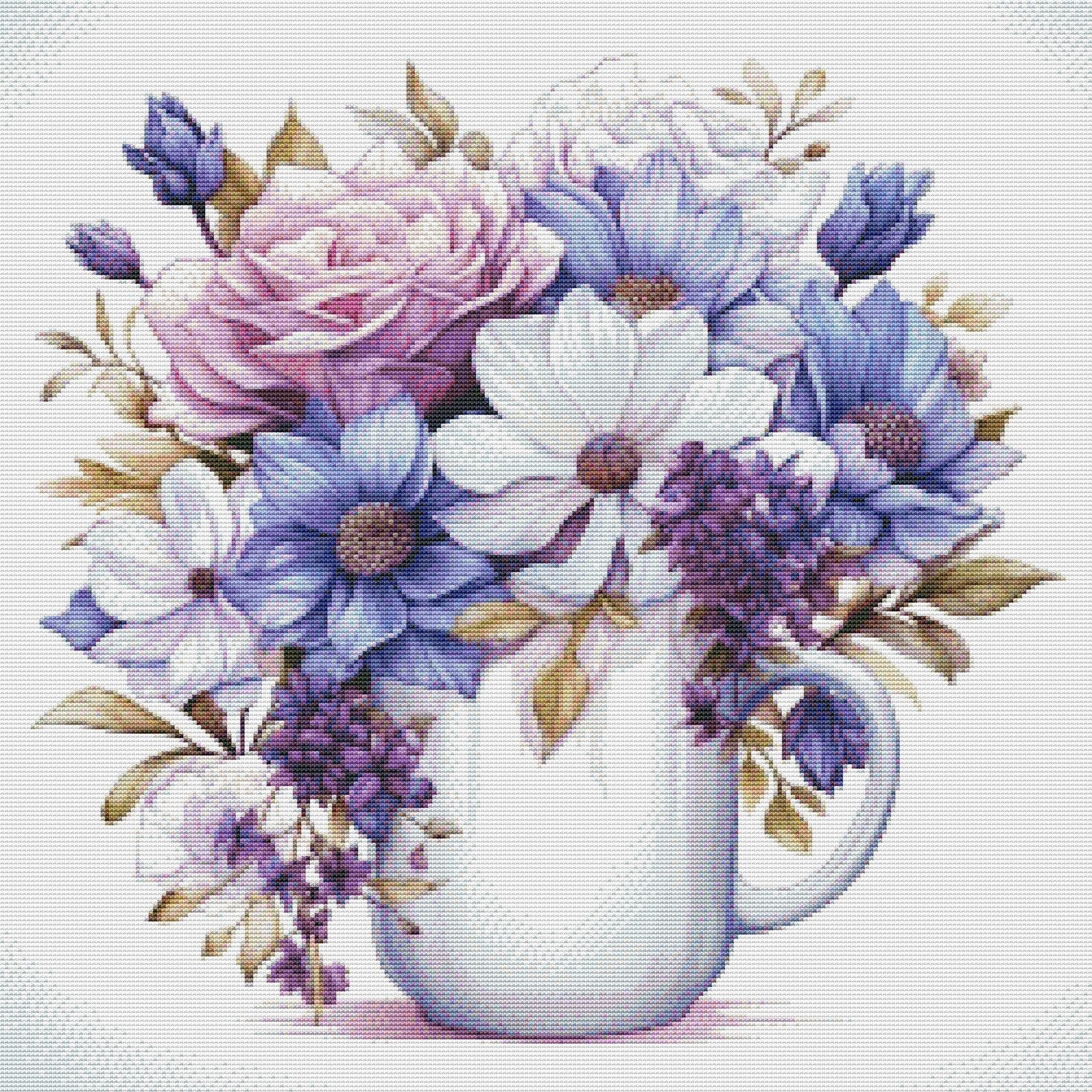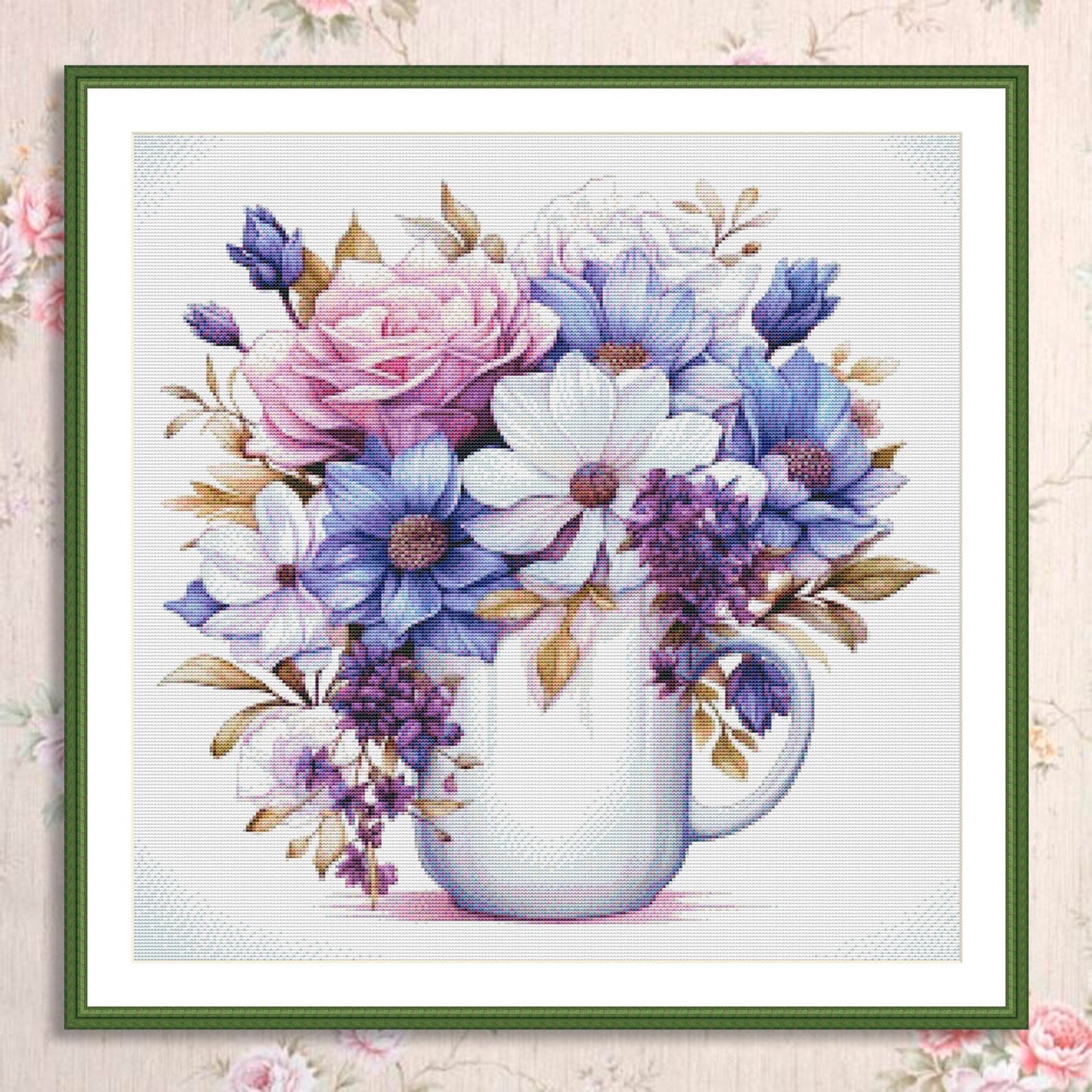 Blooming Tea Cup Cross Stitch Pattern Pattern Bouquet of roses Kitchen Still Life Modern Decor Pattern Embroidery Needlepoint chart PDF