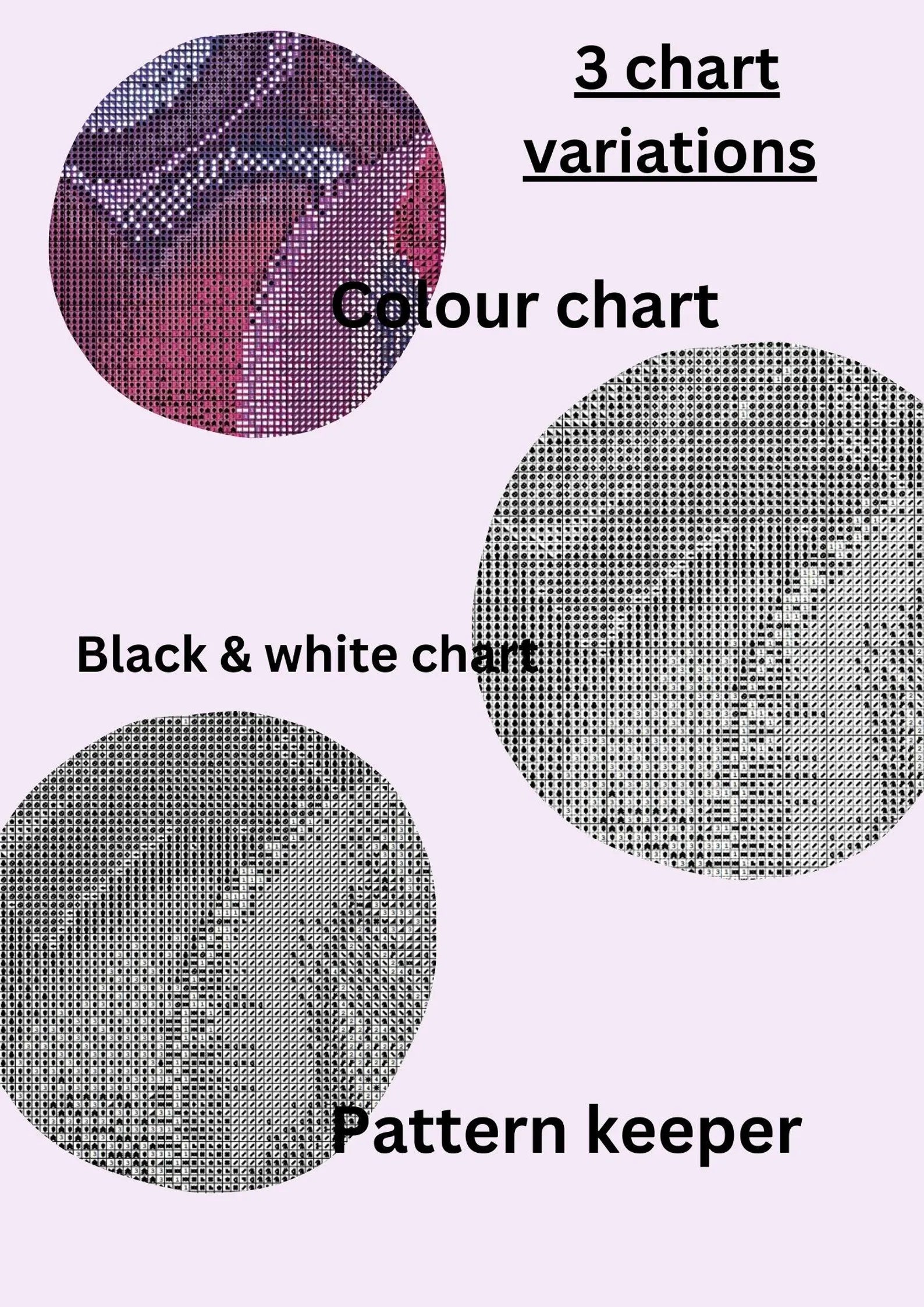 All my patterns come with a DMC key and I provide a colour chart, black & white chart and a pattern keeper compatible version