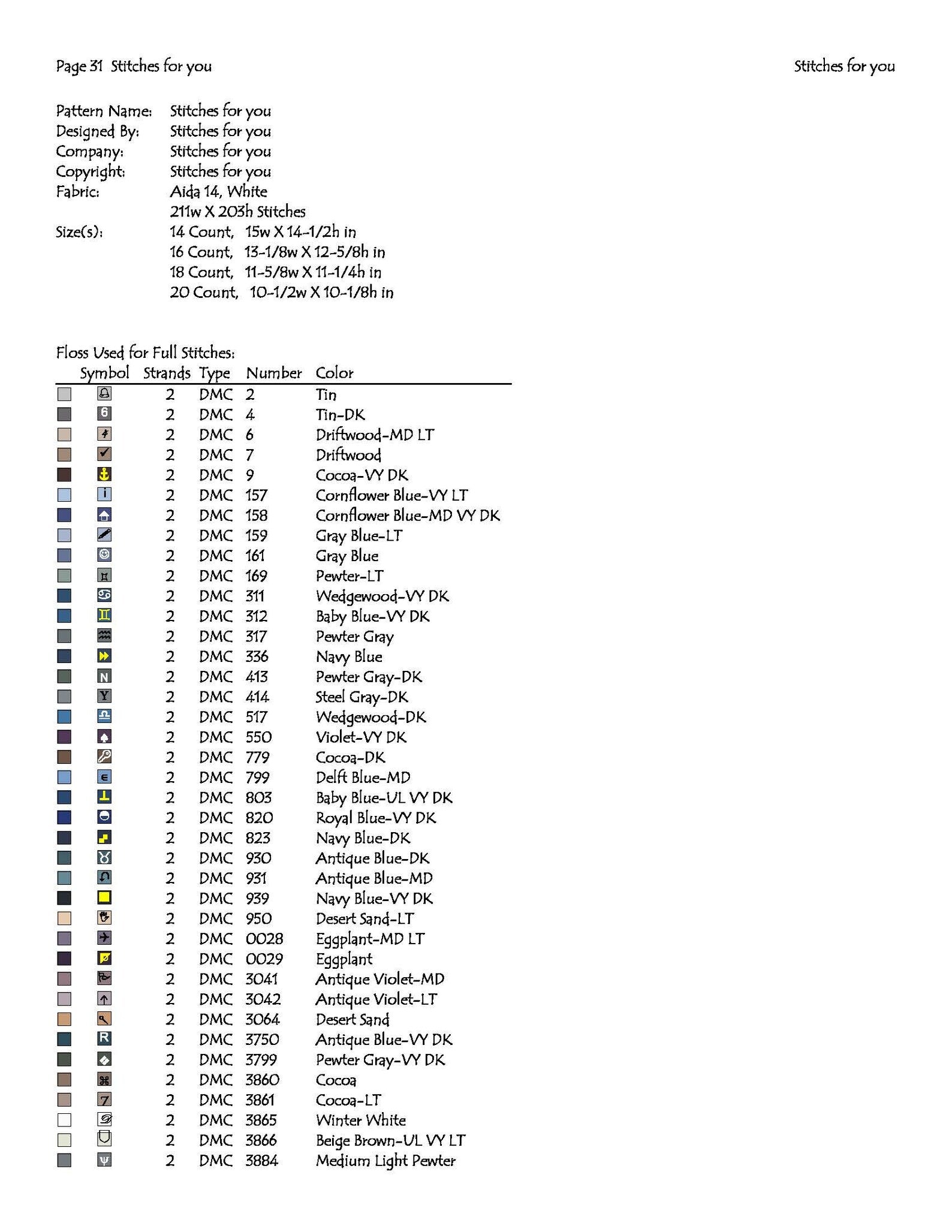 The cross-stitch pattern is easy to follow as the symbols are not too small and are easy to see.