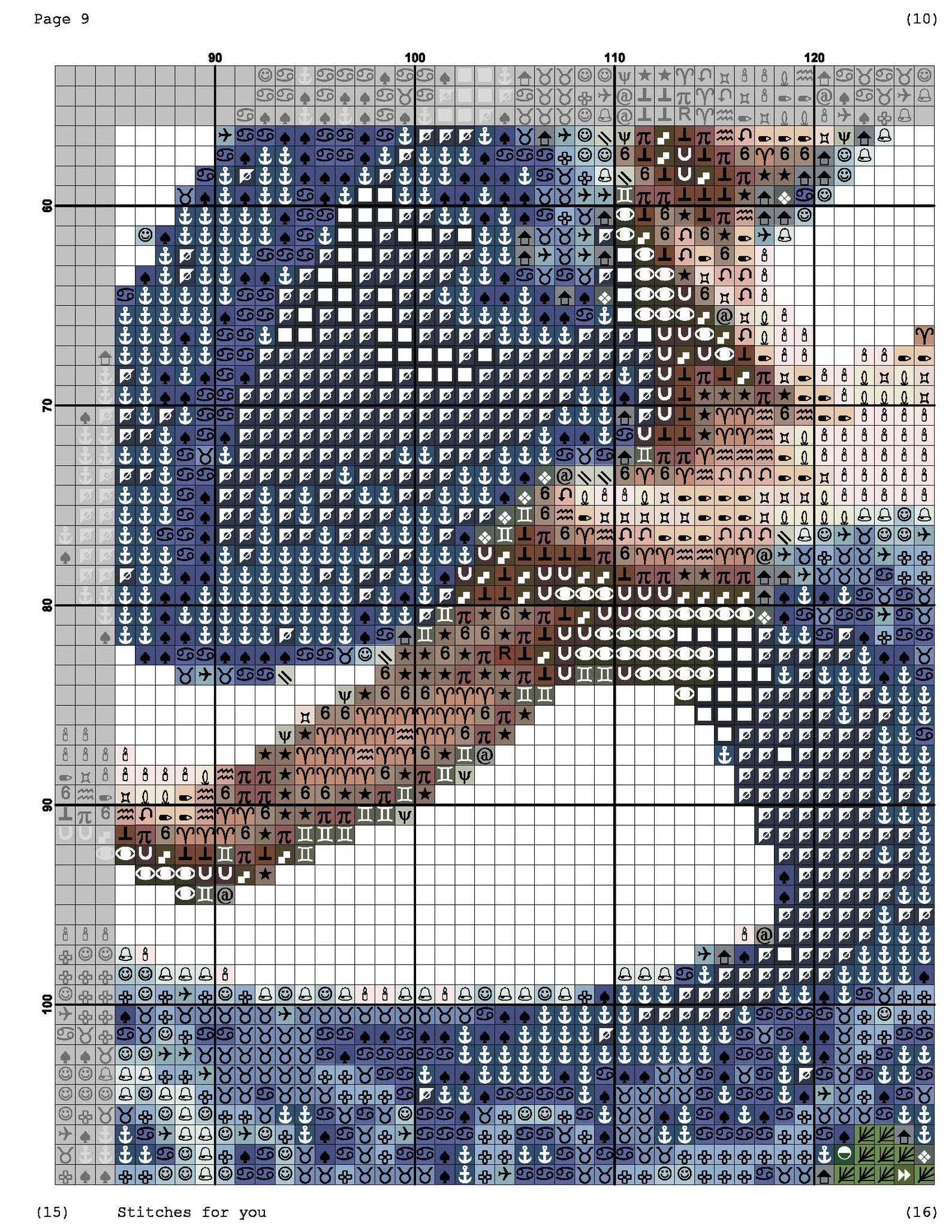 The cross-stitch pattern is easy to follow as the symbols are not too small and are easy to see.