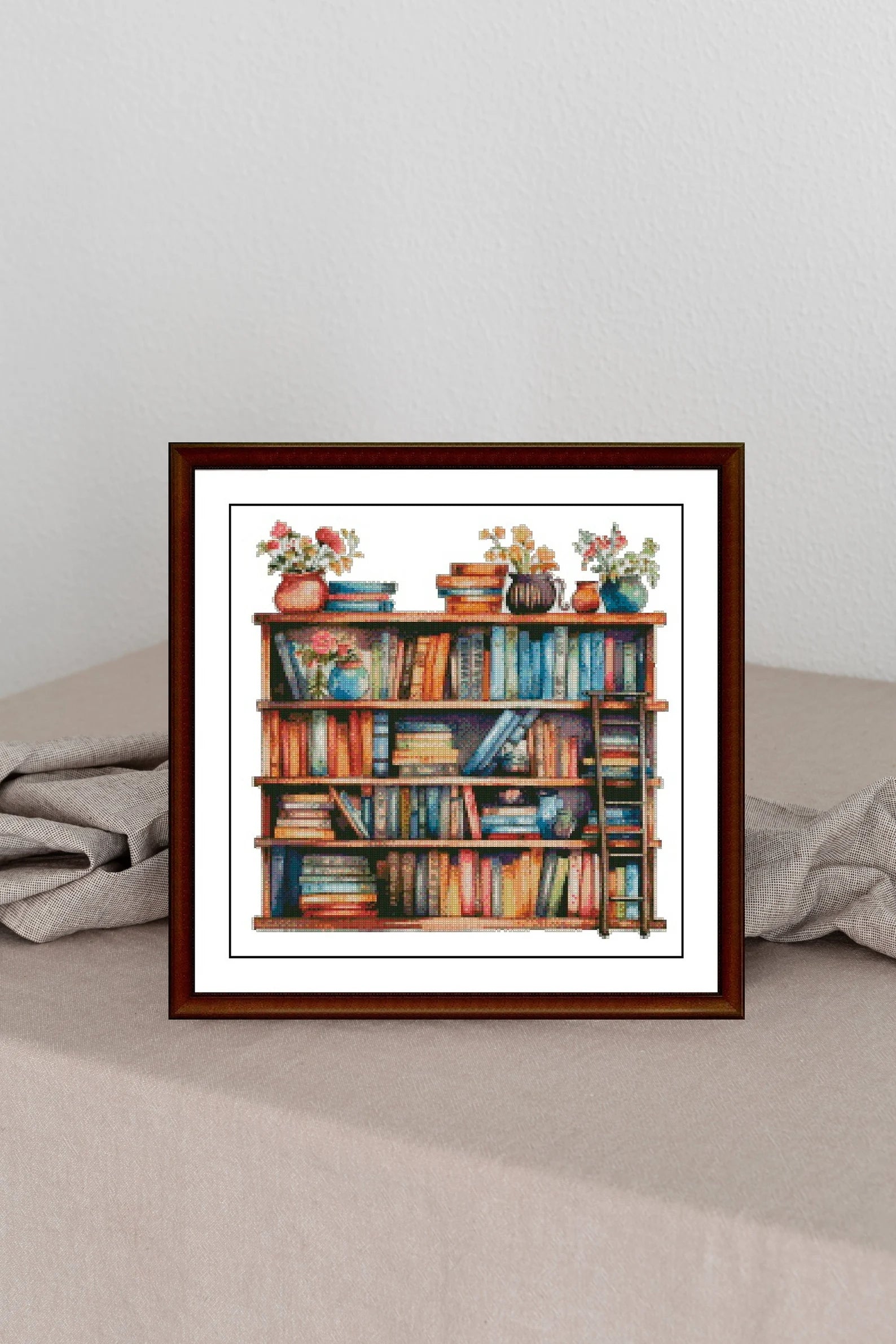 Bookcase Cross Stitch Pattern,Books and flowers in pots,Counted Cross Stitch,Pattern Keeper,xstitxh,Embroidery,Pdf,Instant Download