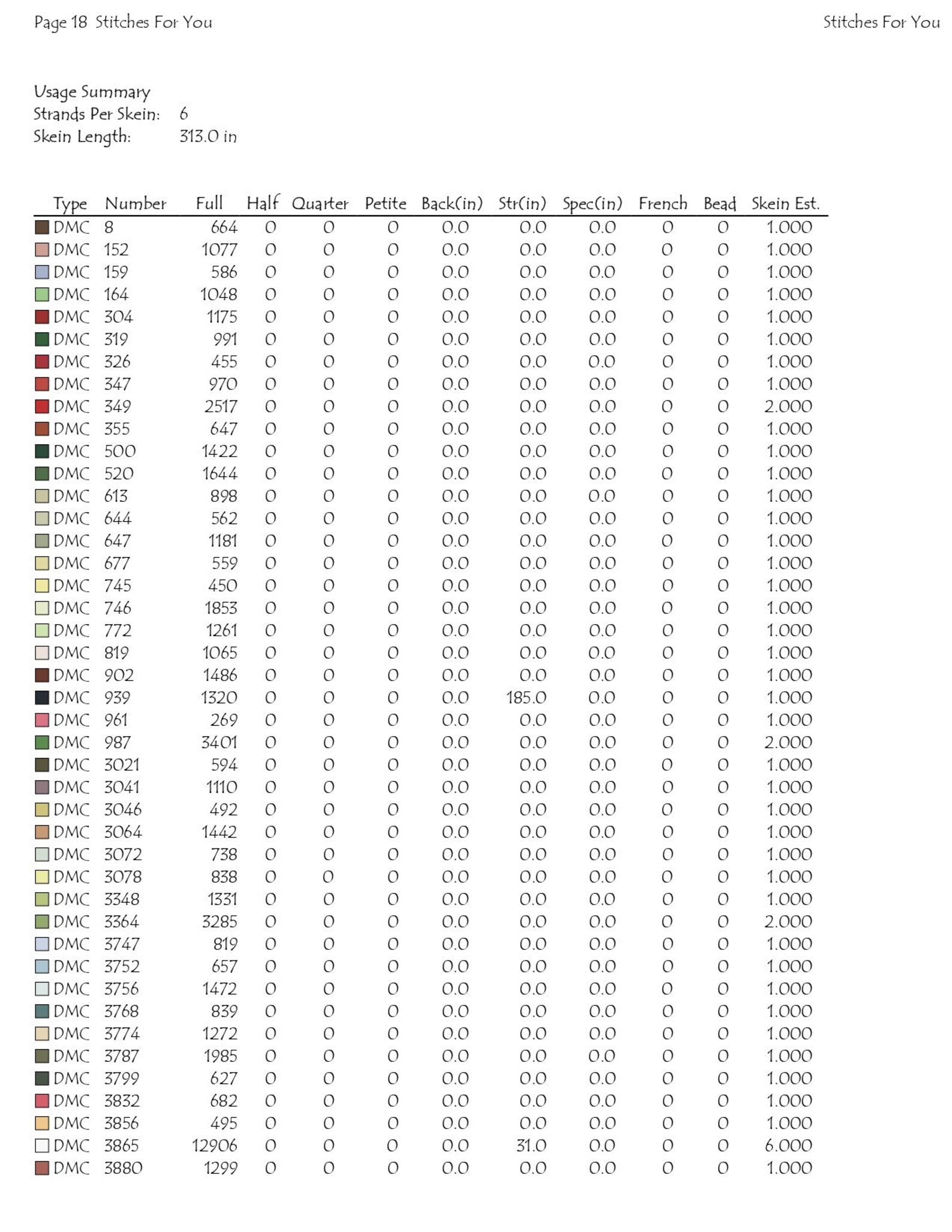 6.amounts of threads required to complete the design