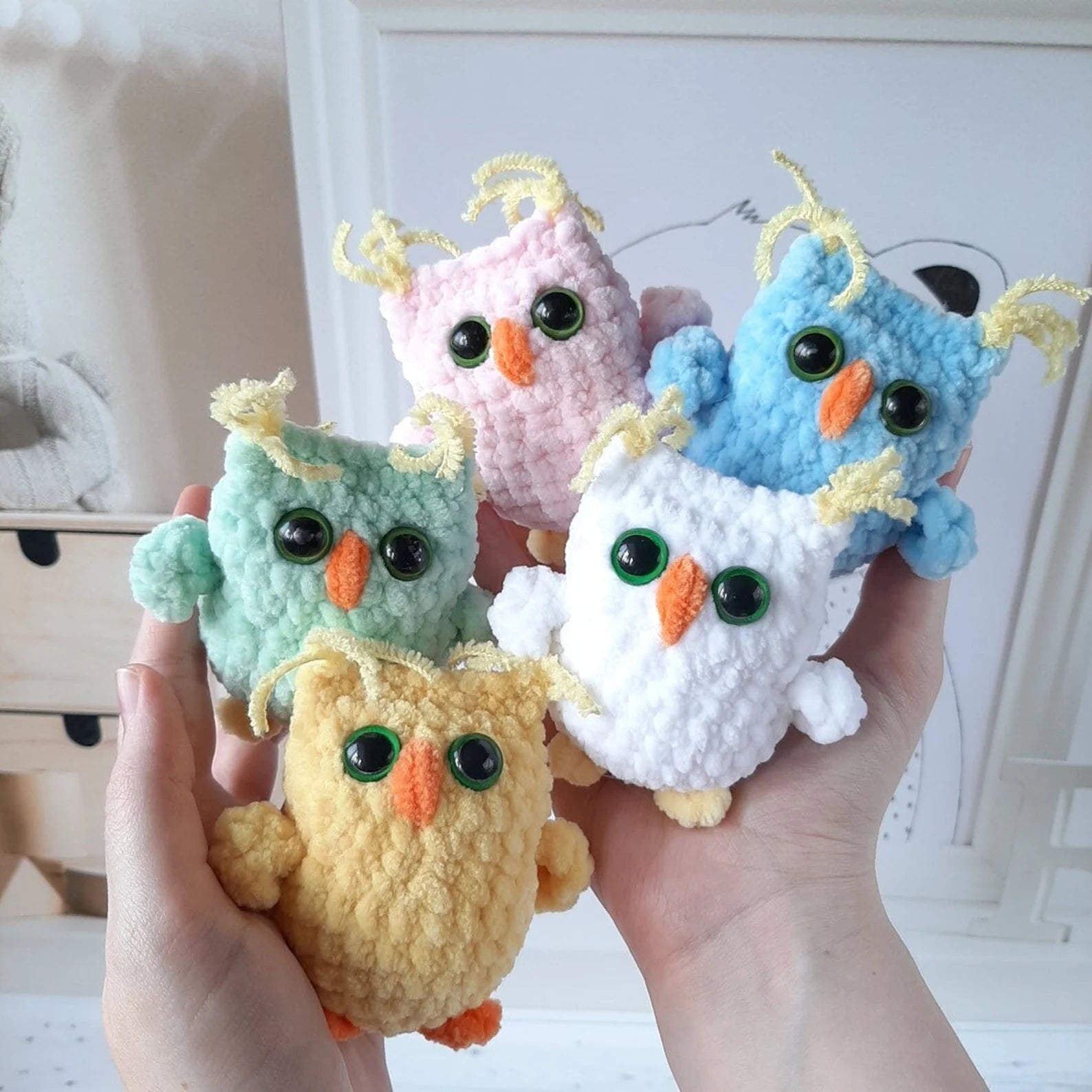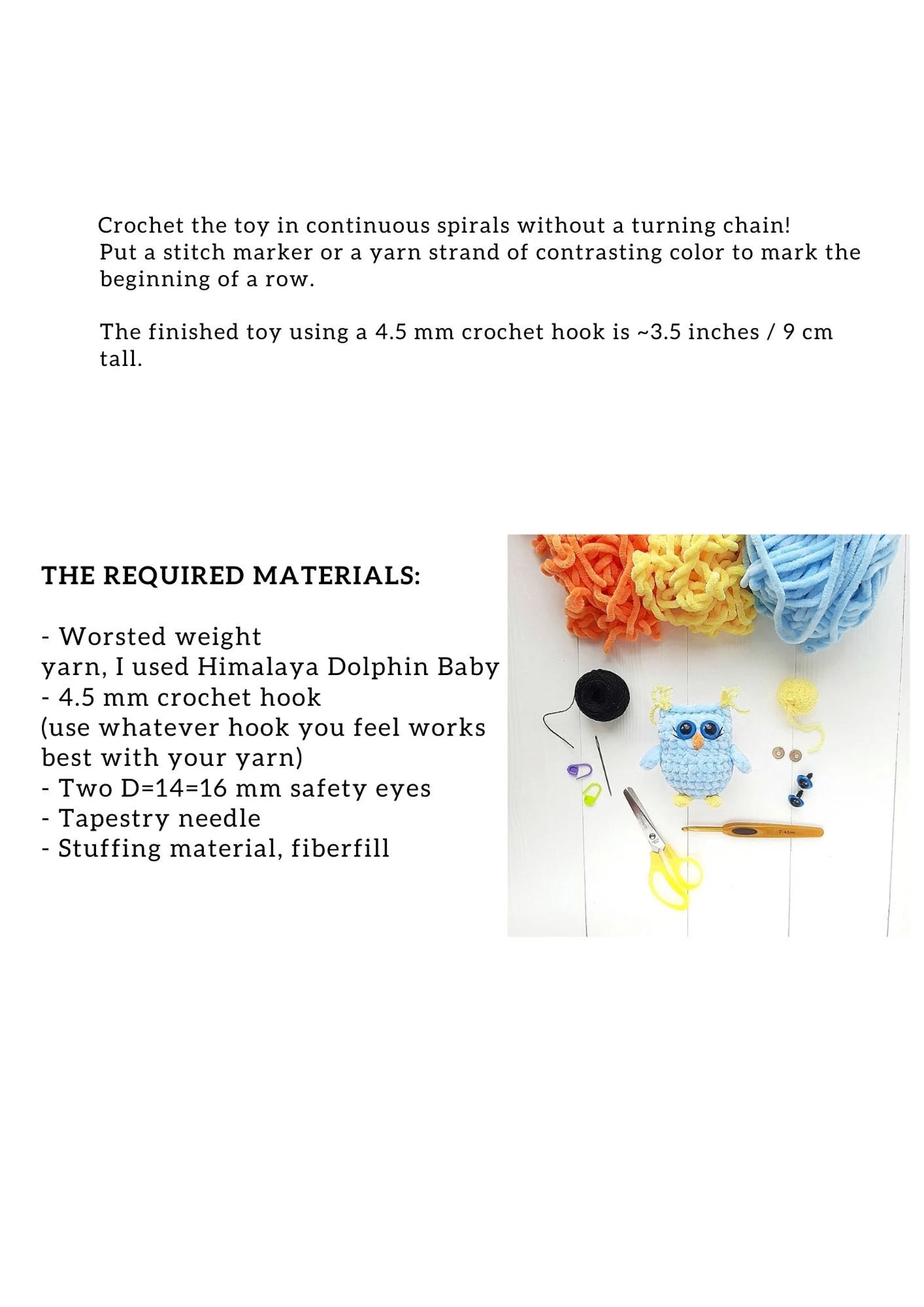 Pattern includes detailed instructions with plenty of photo references to instruct you on how to make owl step by step.