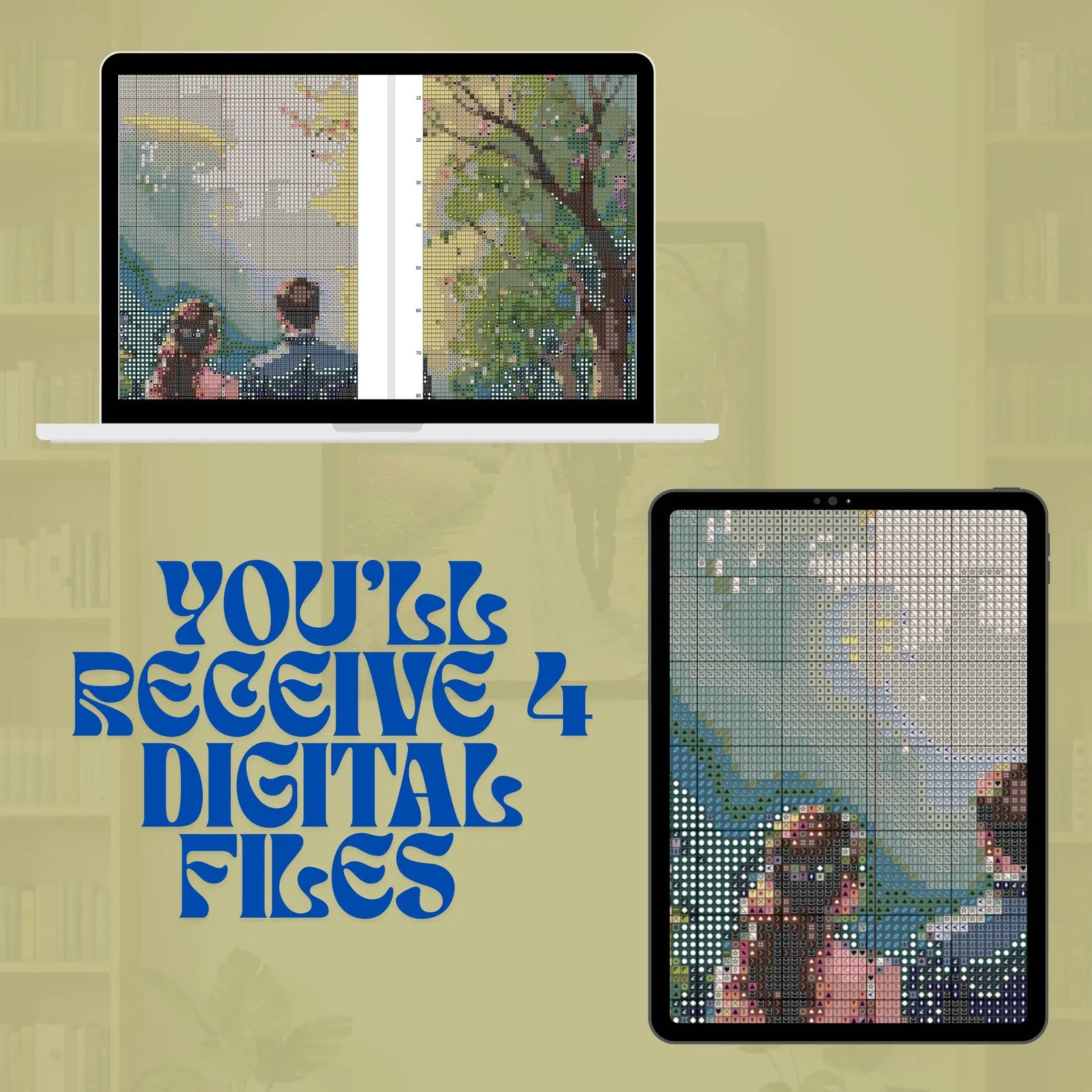 Our Wedding in the Spring Park cross stitch pattern captures the essence of romance, where every delicate stitch unfolds a story of love blossoming amidst nature's tender embrace. This enchanting design invites you to create a timeless keepsake, perfect for commemorating life's most cherished moments.