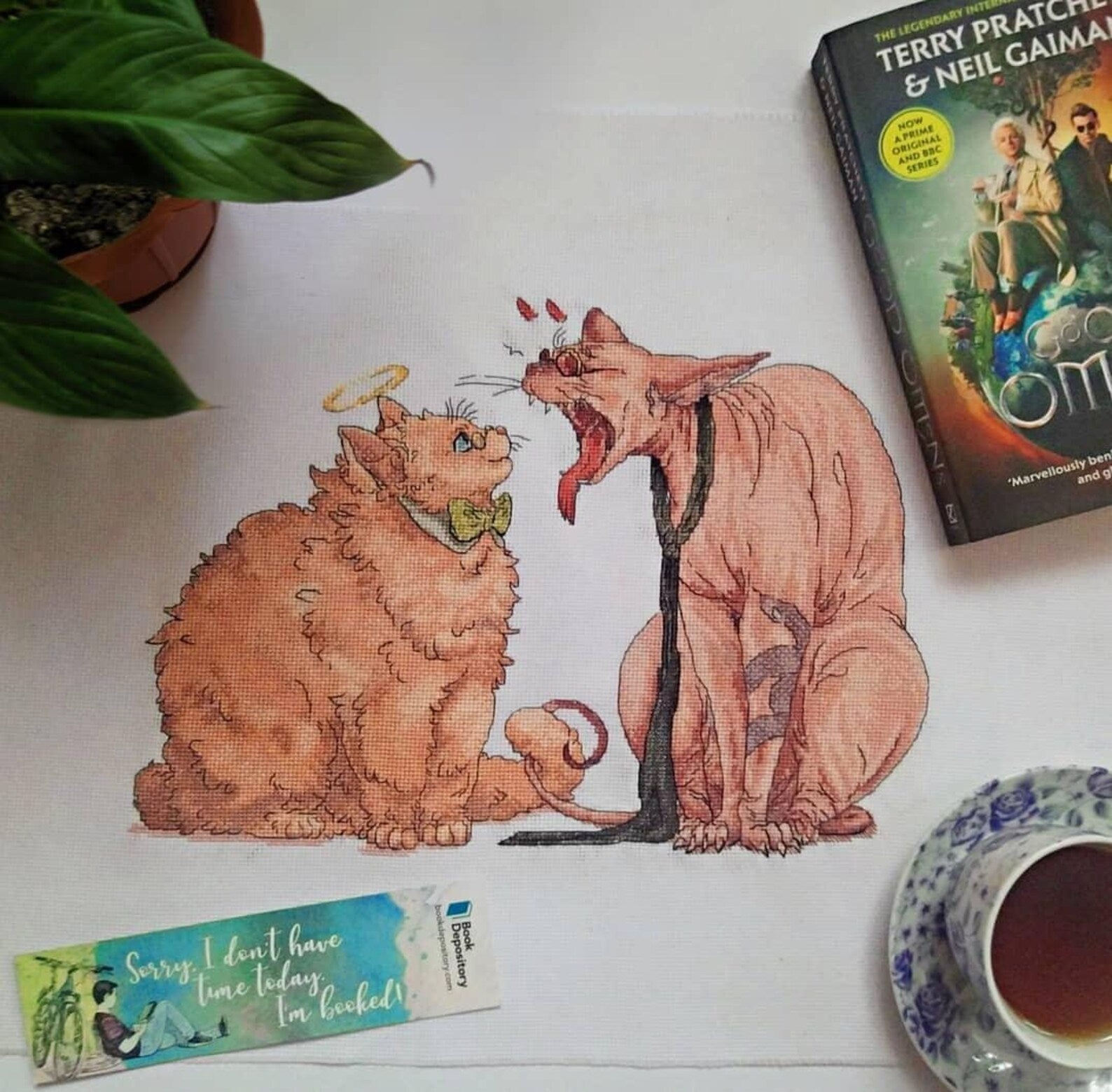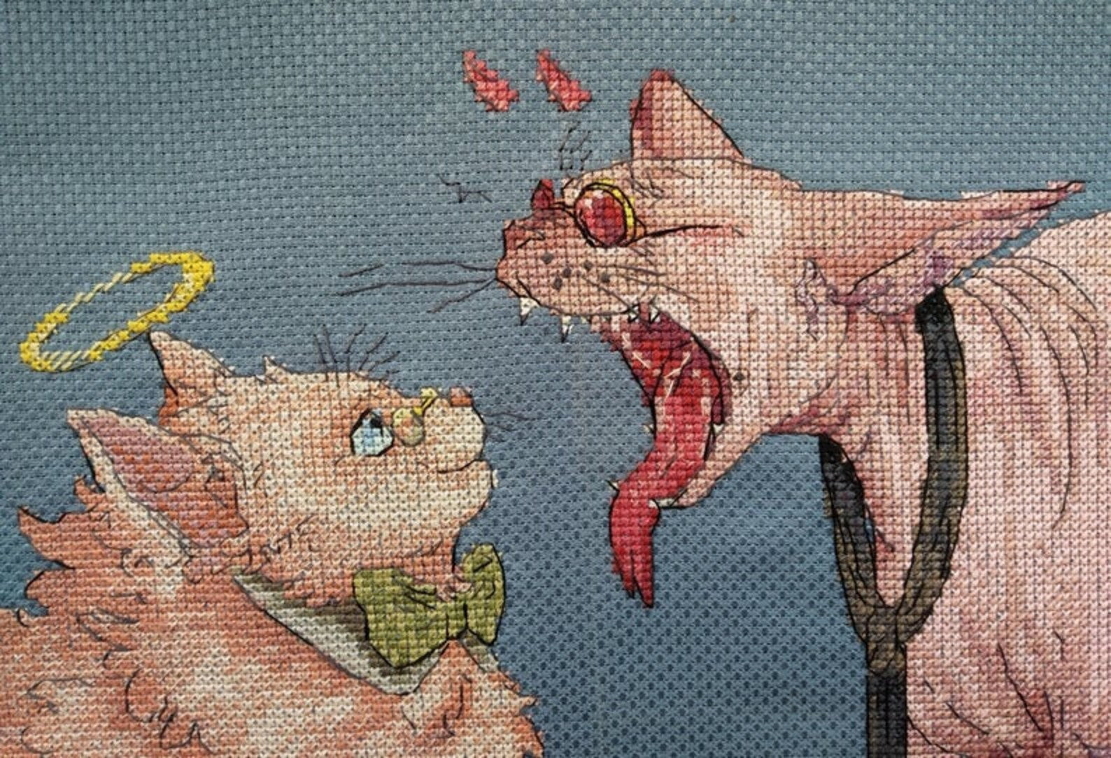 Cross Stitch Pattern Angel Cat and Demon Cat DMC Chart Printable PDF Instant Downl