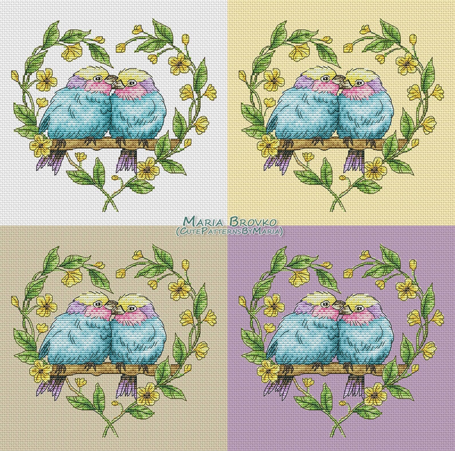 Cross Stitch Pattern Bird romance DMC Chart Embroidery Printable PDF Instant Download