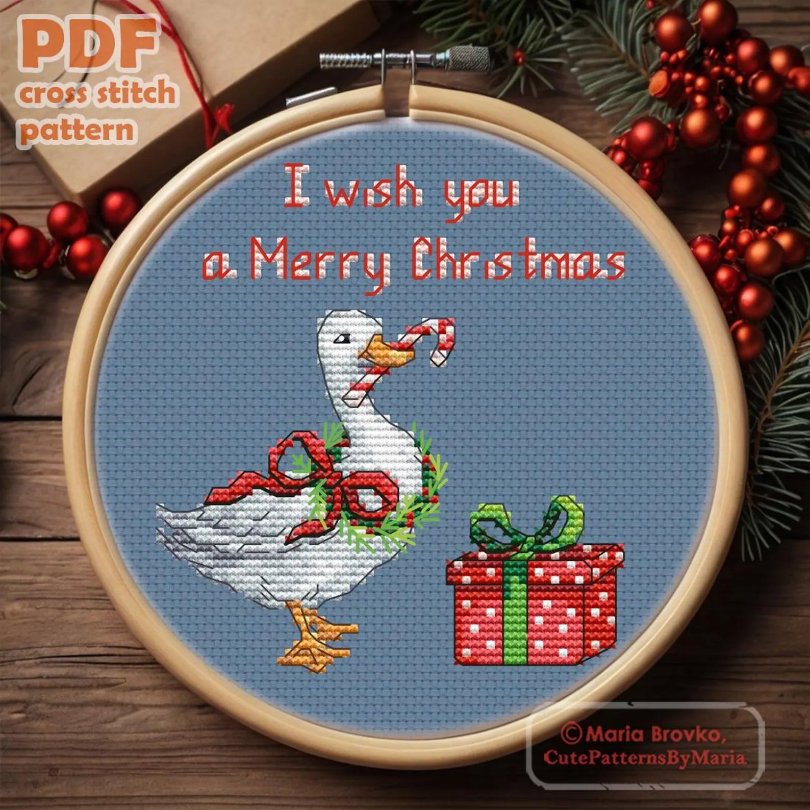 Cross Stitch Pattern Christmas goose DMC Chart Printable PDF Instant Download