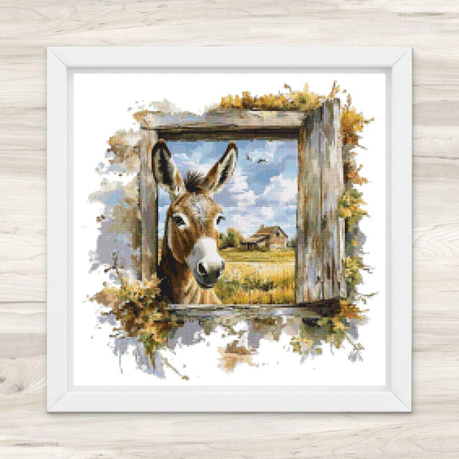 Cross stitch pattern for our Farm Window Donkey. This is a digital cross stitch pattern only. It can be printed and is also suitable for onscreen viewing (PC, tablet, smartphone). No kits, fabric, floss, or other materials are included in this listing.
