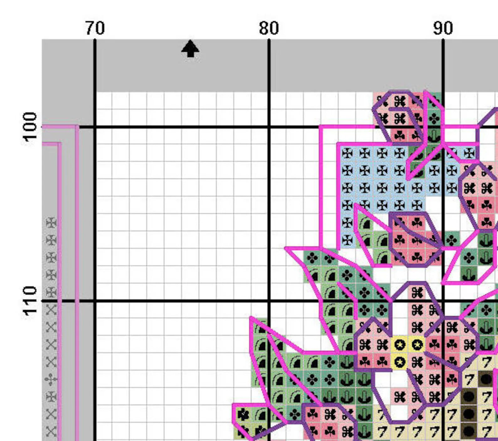 Each PDF file is divided into pages and ready for printing, contains a chart with information about the pattern, symbol key and a list of thread colors.
