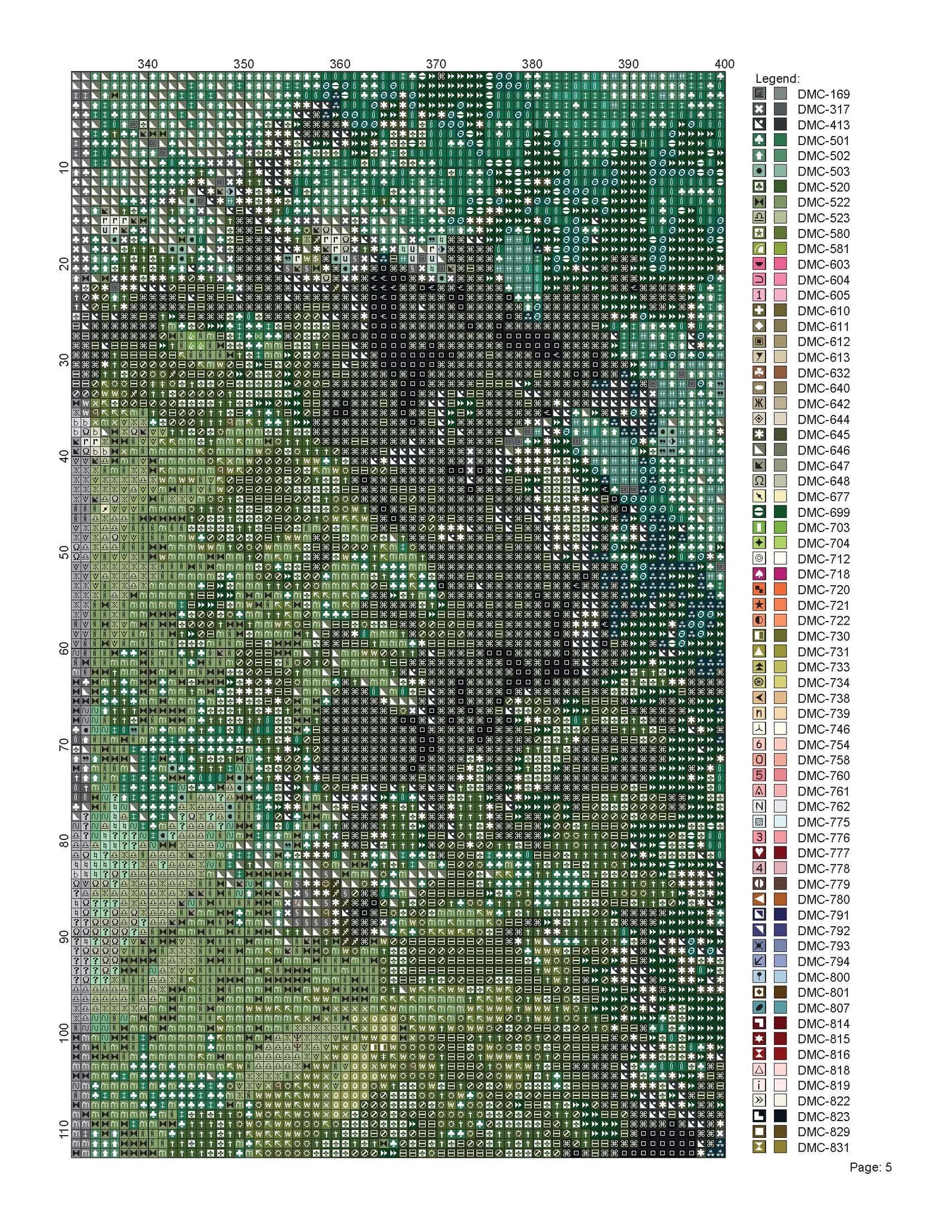 This pattern uses 250 different colors of DMC thread.