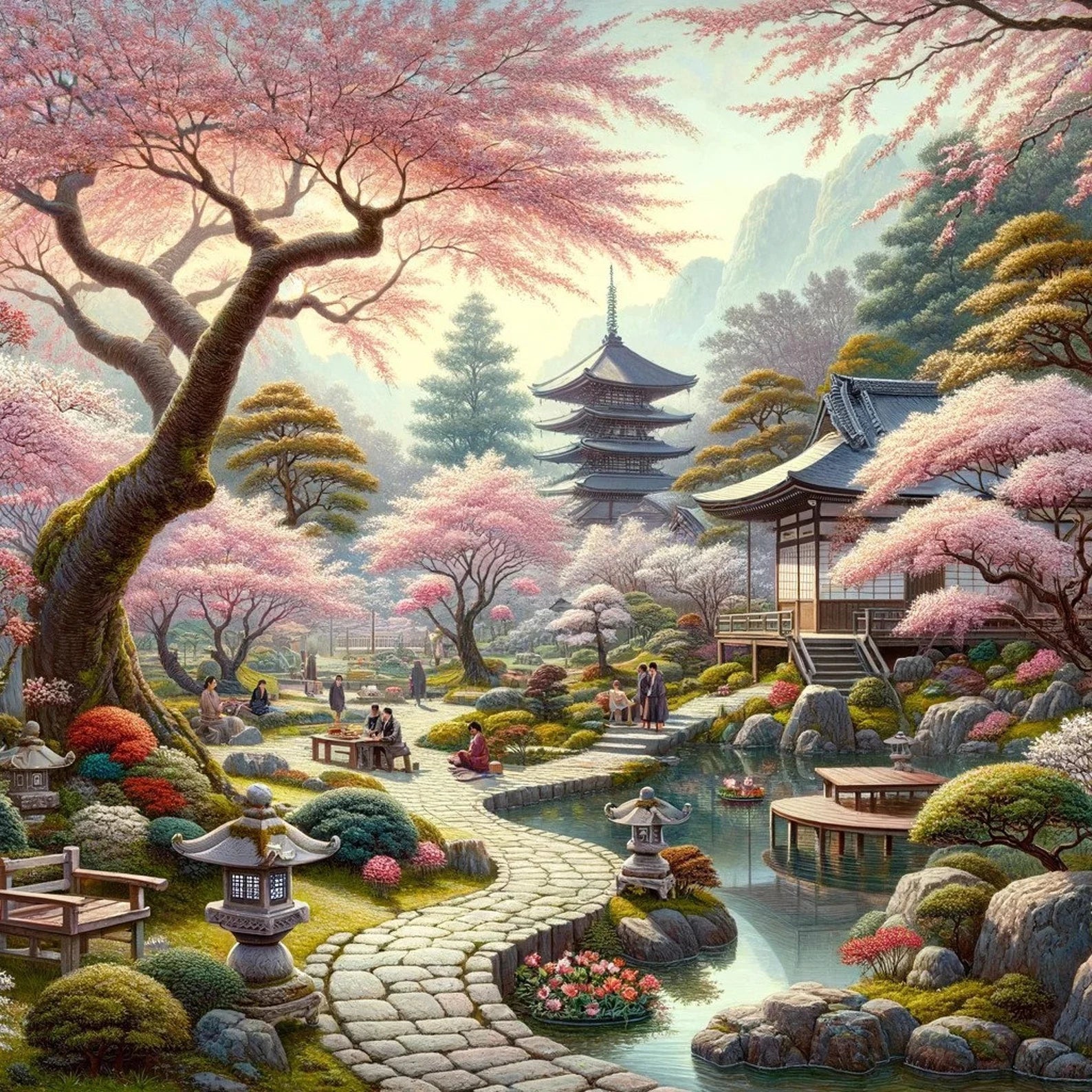 Cross Stitch Pattern Japanese Garden Full Coverage
