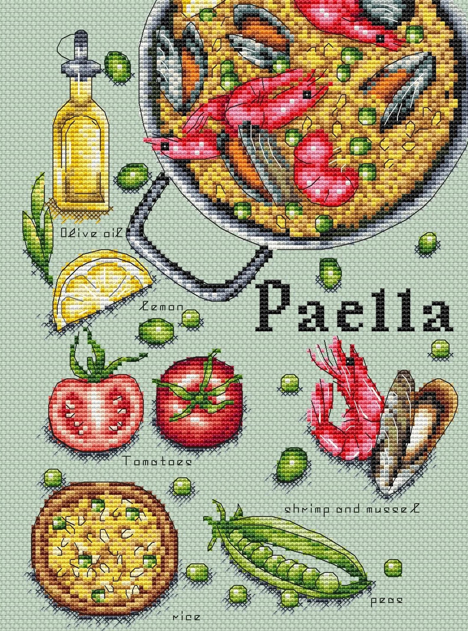 Cross Stitch Pattern "Paella" DMC Cross Stitch Chart Needlepoint Pattern Embroidery Chart Printable PDF Instant Download