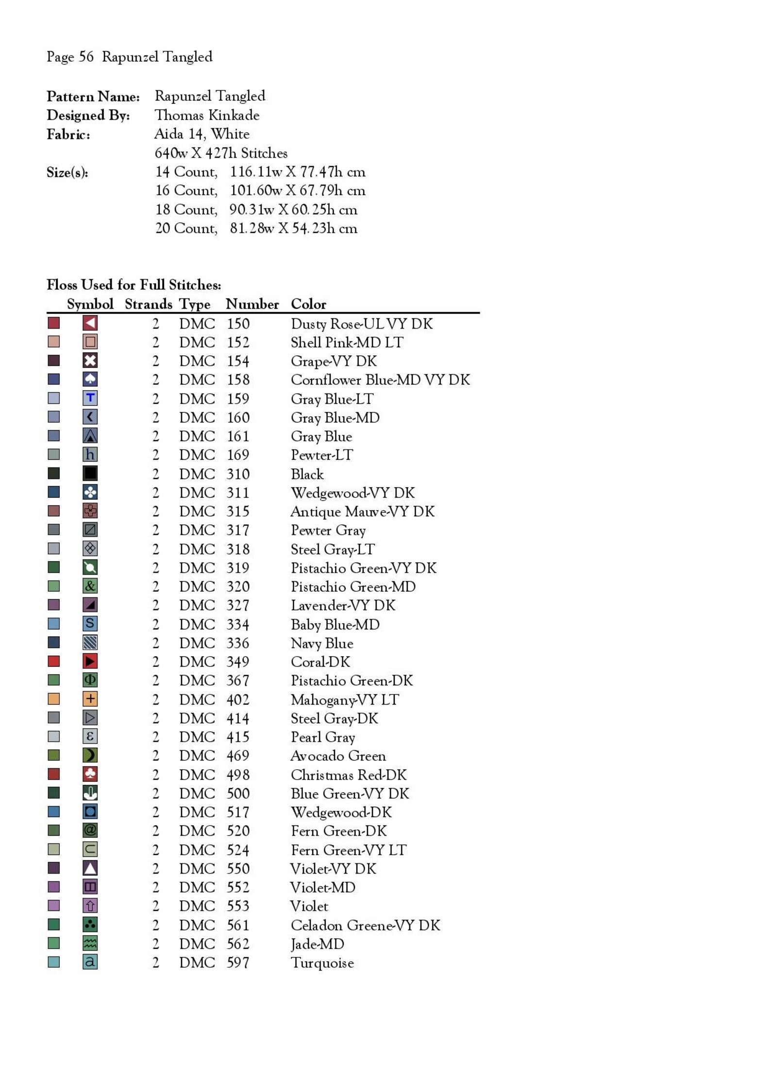 Cross Stitch Pattern PDF "Tangled" DMC 128 Solid Colors, 640w X 427h Stitches, Size on 18th Count: 91w X 60h cm (36w" X 24h")