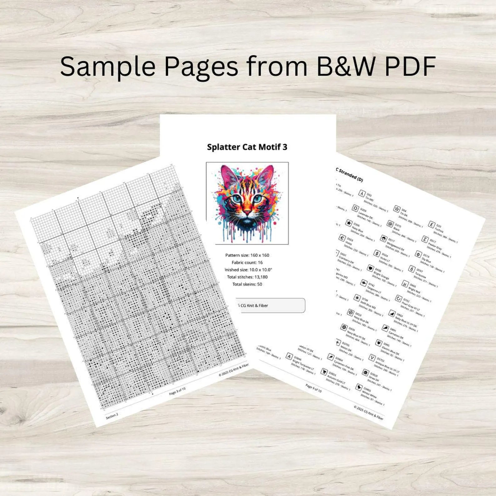 Cross Stitch Pattern: Splatter Cat Art Motif 3 - PDF Instant Download