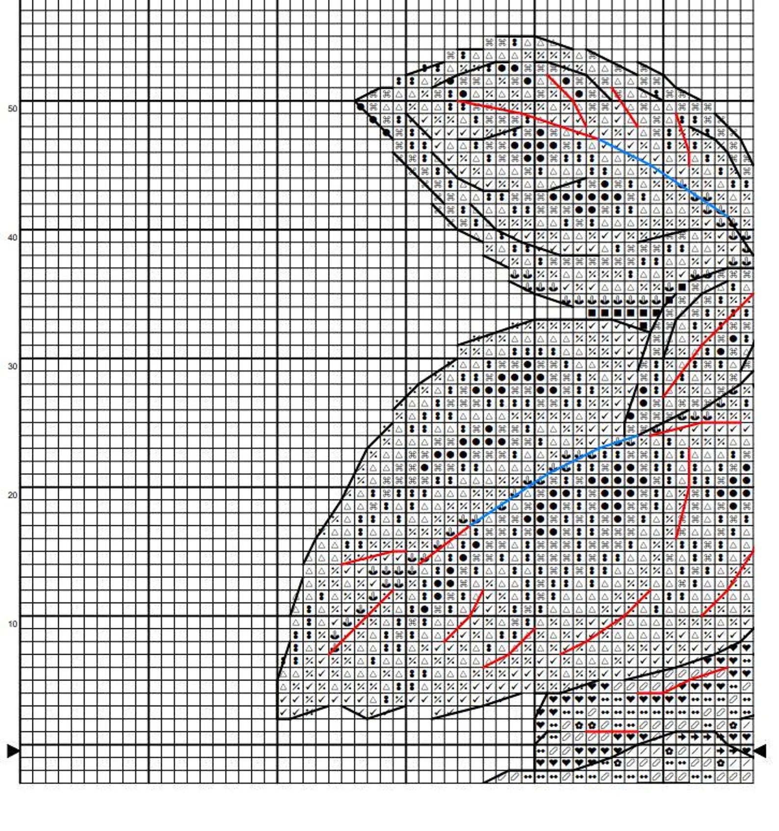 Pattern includes 2 files: black-and-white, color chart (both of files include a list of DMC thread colors) in PDF