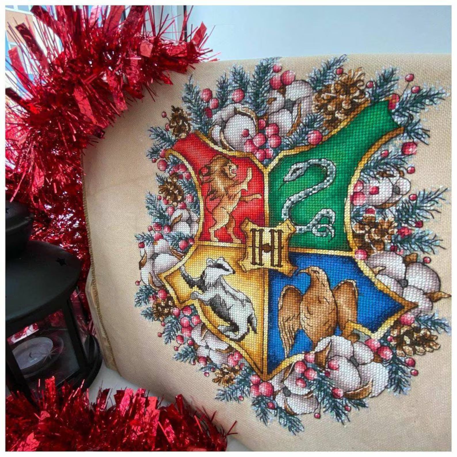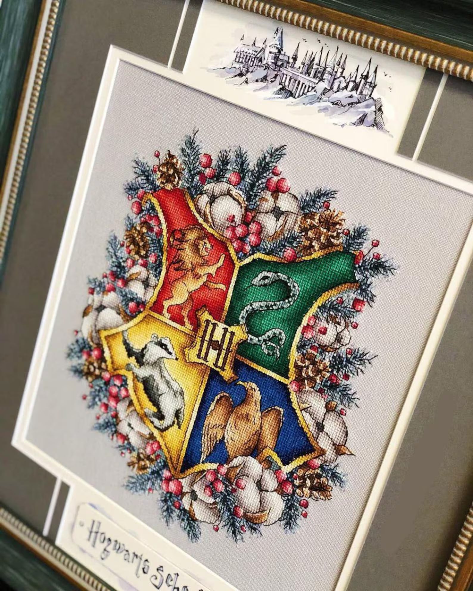 Emblem school of wizards Fandom cross stitch pattern Hand embroidery design Beginner needlepoint scheme Digital pdf file