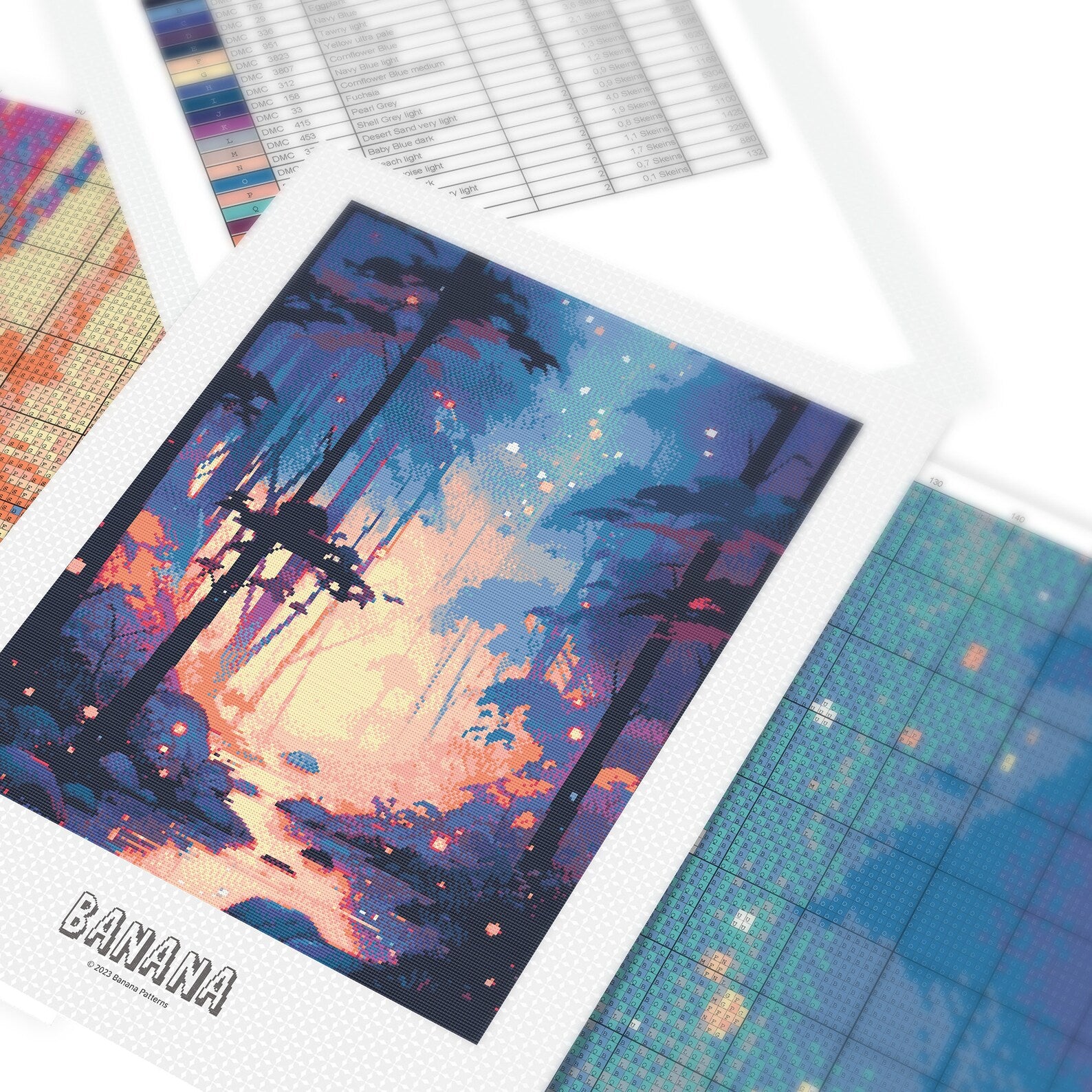 Fairy Forest Cross Stitch Pattern | Landscape Cross Stitch Chart Download | Fantasy Cross Stitch Patterns | Large Counted Cross Stitch PDF