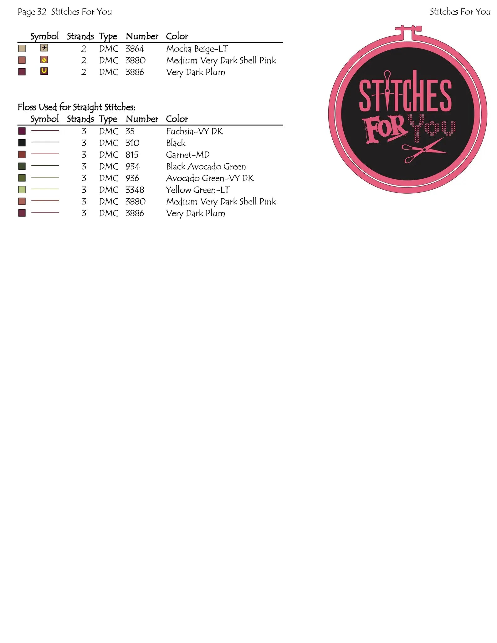 * The pattern pages are in Black and white and color symbols