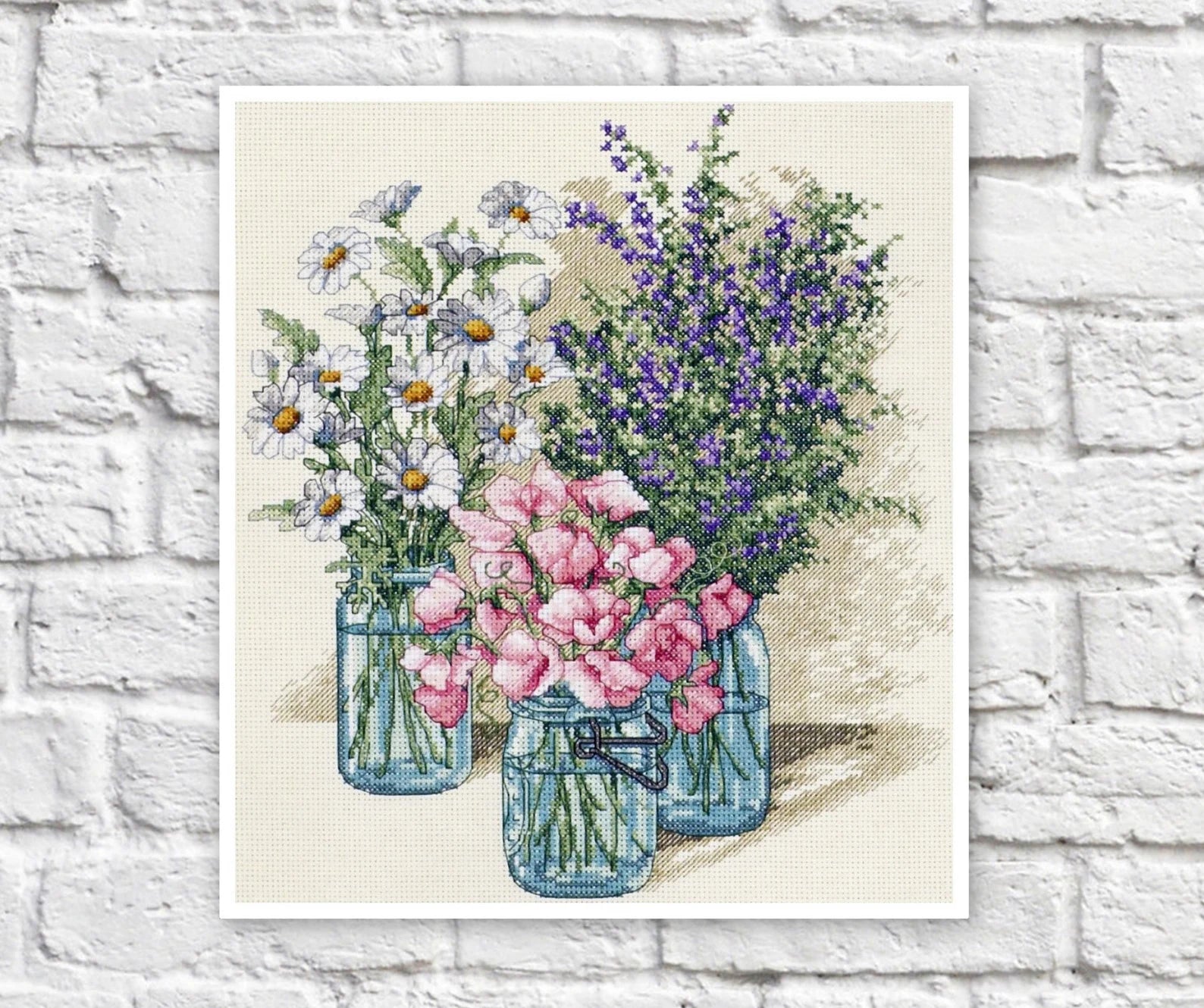 Flowers Bouquet Cross Stitch Pattern Colorful Art DIY X-stitch Chart Needlepoint Embroidery Chart Printable Instant Download PDF Design