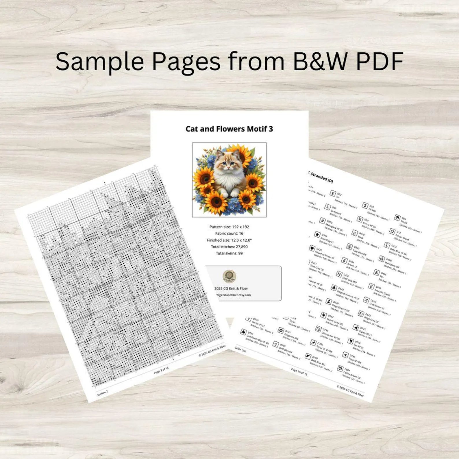 Cross stitch pattern for our Cat and Flowers Motif 3 - Fluffy Striped Cat with Sunflowers. This is a digital cross stitch pattern only. It can be printed and is also suitable for onscreen viewing (PC, tablet, smartphone). No kits, fabric, floss, or other materials are included in this listing.