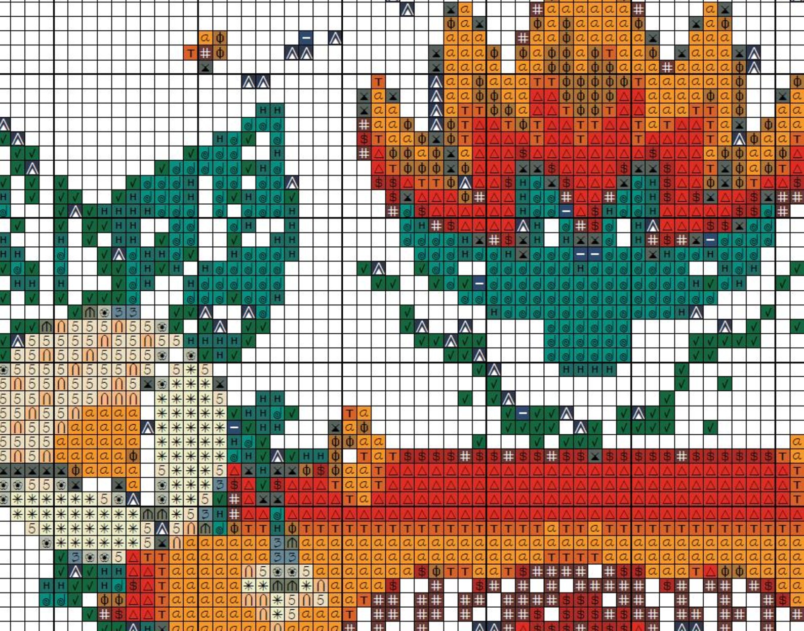 You'll get pattern in black and white symbols , colorblocks and symbols , and a list of the DMC floss color.