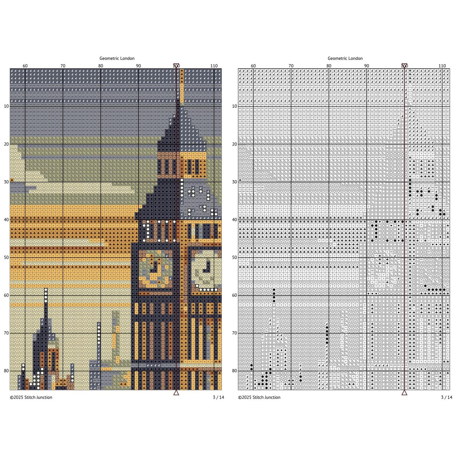 Geometric London Cross Stitch Pattern - Modern Village Architecture Embroidery Design, Big Ben, Tower Bridge & London Eye, Digital Download.