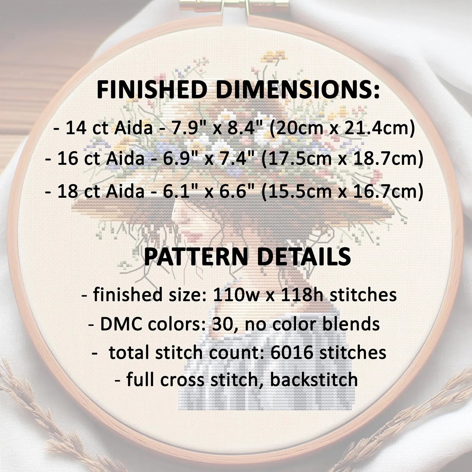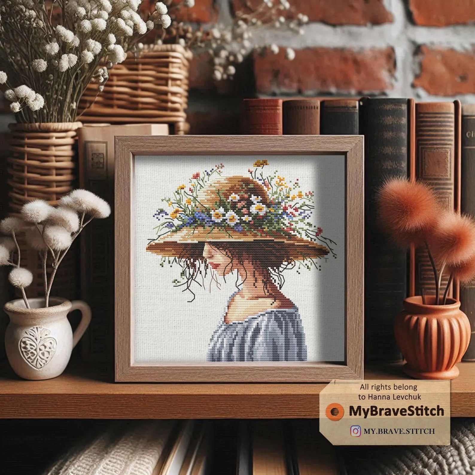 Girl in a hat Cross Stitch, Cross Stitch Pattern, Girl cross stitch, punto de cruz, point de croix, count cross stitch pattern