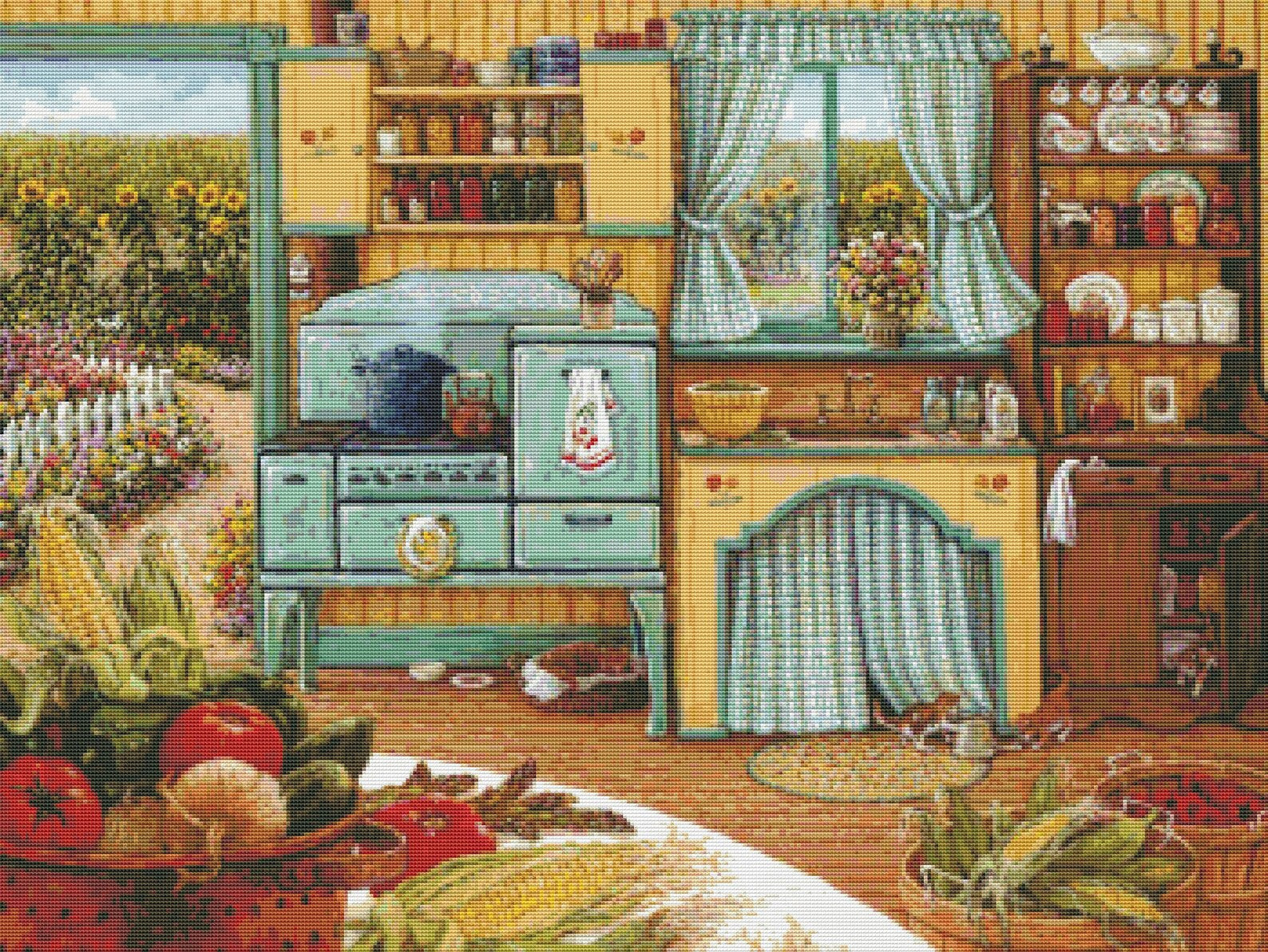 Grandma's kitchen Still Life Cross Stitch Pattern Digital Pattern Decor Wild Flowers Pattern Bouquet Embroidery Needlepoint Chart Download