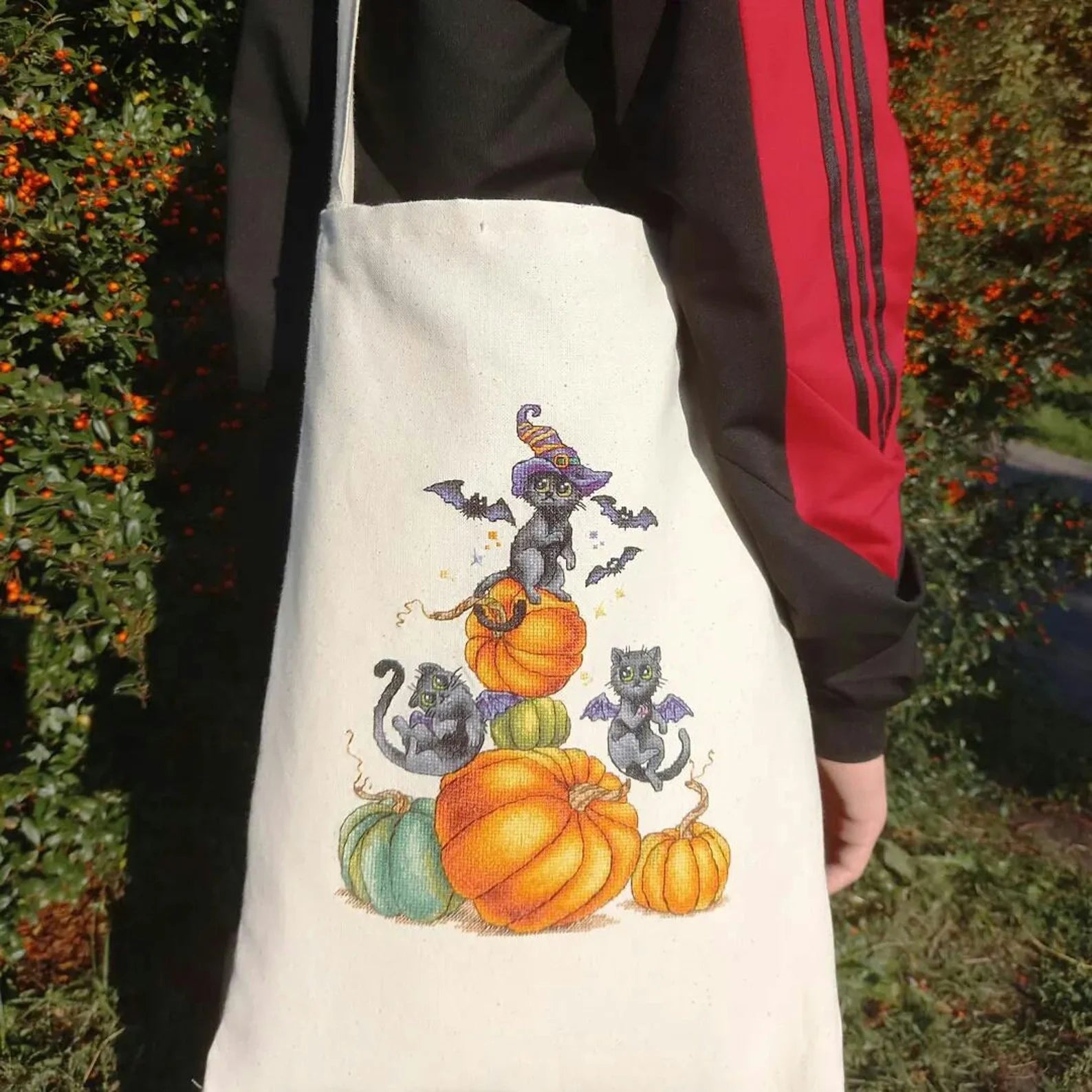 Halloween cross stitch pattern Cat witchcraft DMC Chart Printable PDF Instant Download