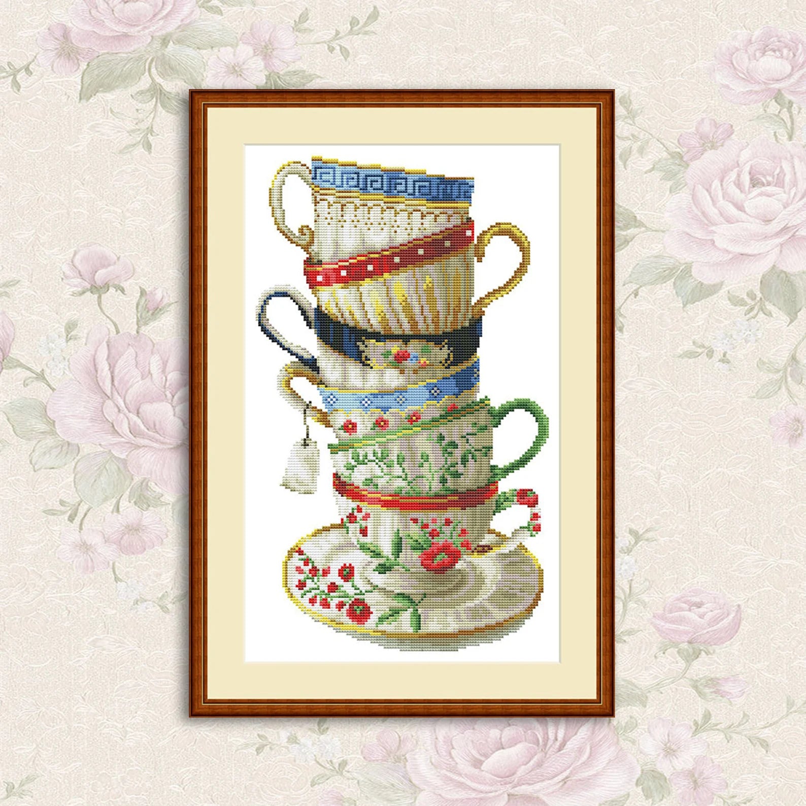 Kitchen Cross Stitch Pattern Tea Cups Pattern Kitchen Still Life Modern Decor Pattern Cups Mugs Napkins Embroidery Needlepoint chart PDF