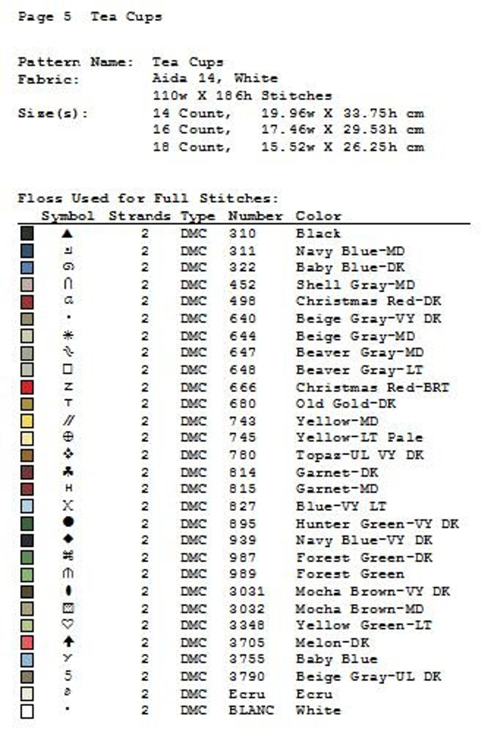 Kitchen Cross Stitch Pattern Tea Cups Pattern Kitchen Still Life Modern Decor Pattern Cups Mugs Napkins Embroidery Needlepoint chart PDF