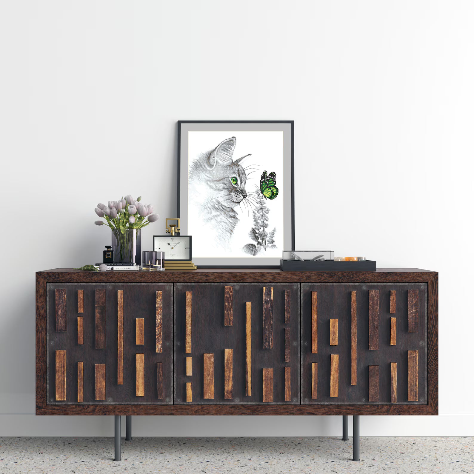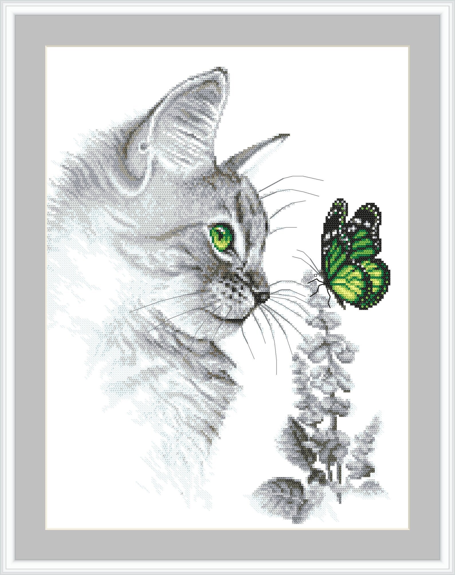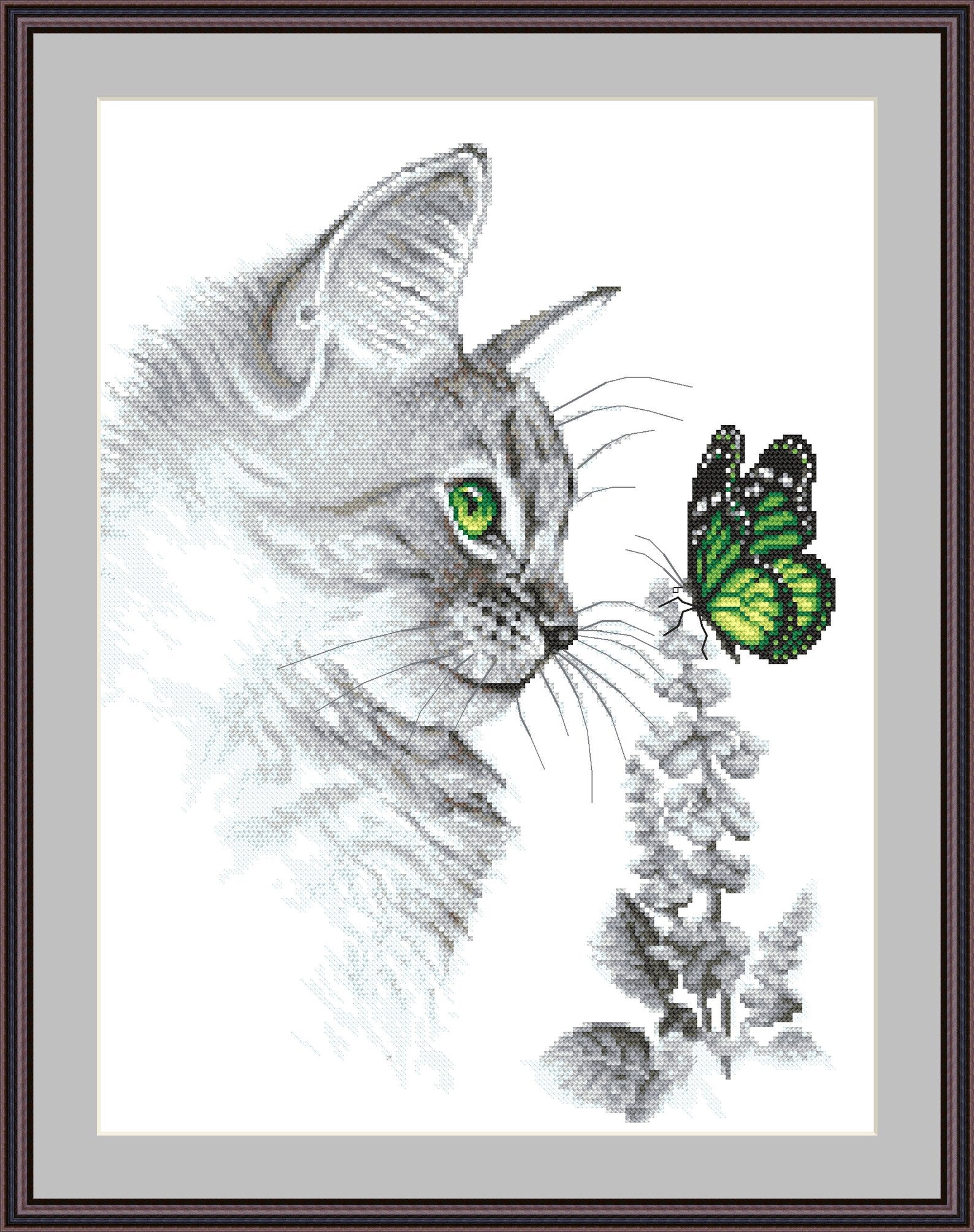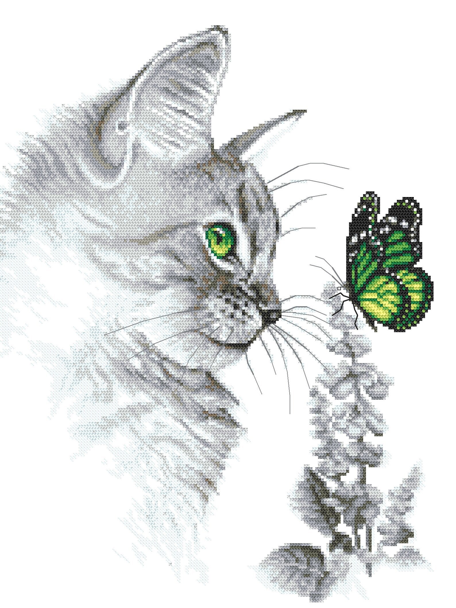 Kitten with butterfly - digital cross stitch pattern, pdf,.hks- smartphone pattern,instant download pattern.