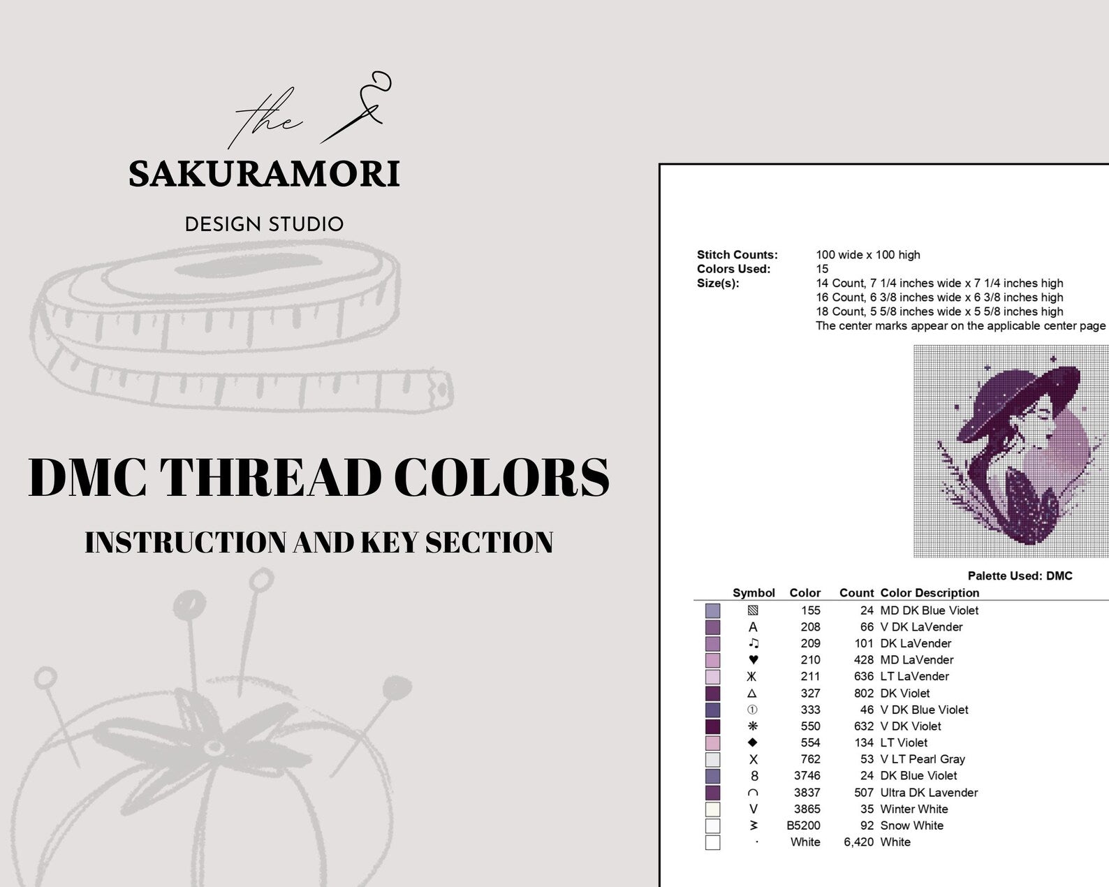 — List of DMC thread colors (instruction and key section);
