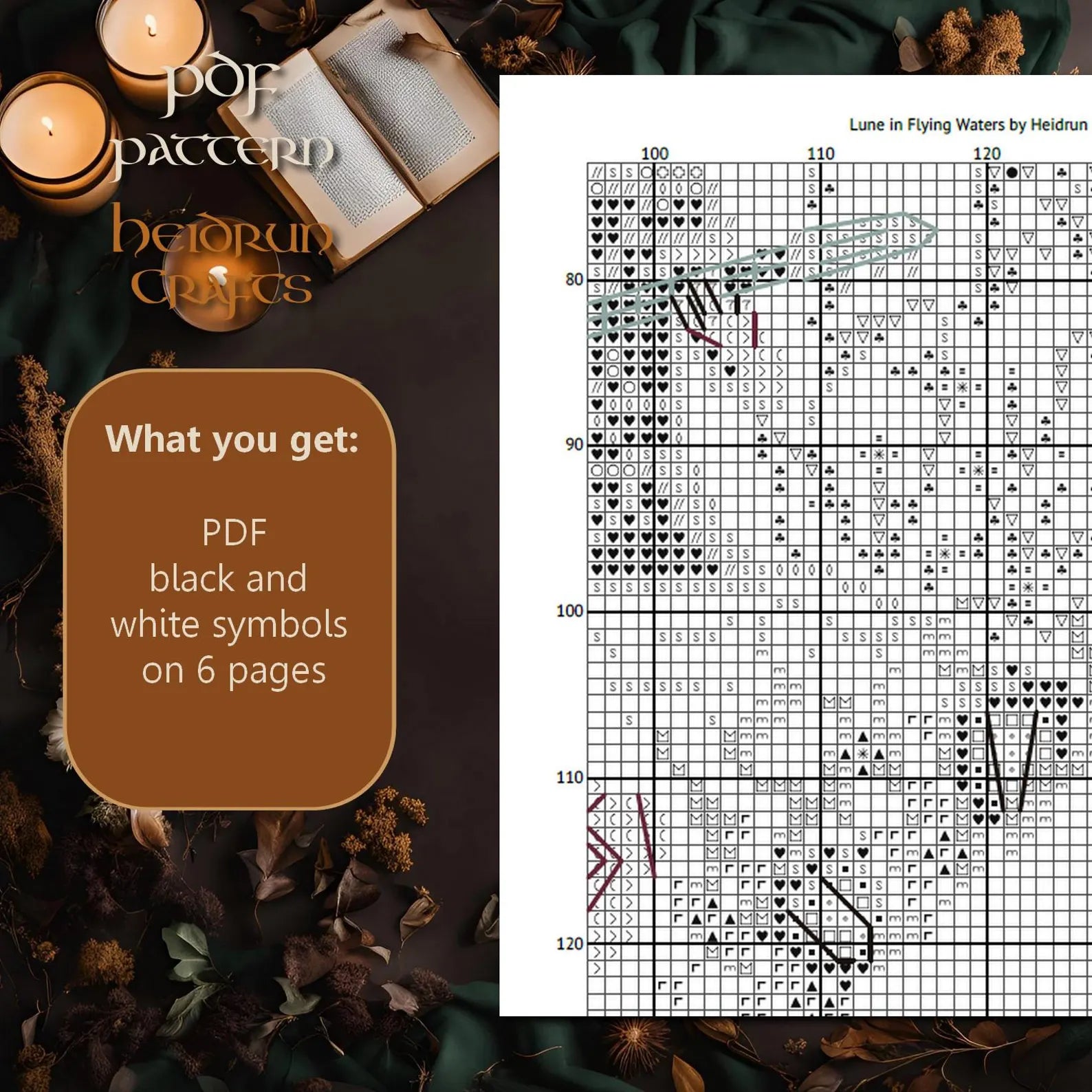 Lune in Flying Waters Cross Stitch Pattern PDF – Clair Obscur Expedition 33, Underwater Scene, Coral, Guitar, Flowers, Embroidery Chart