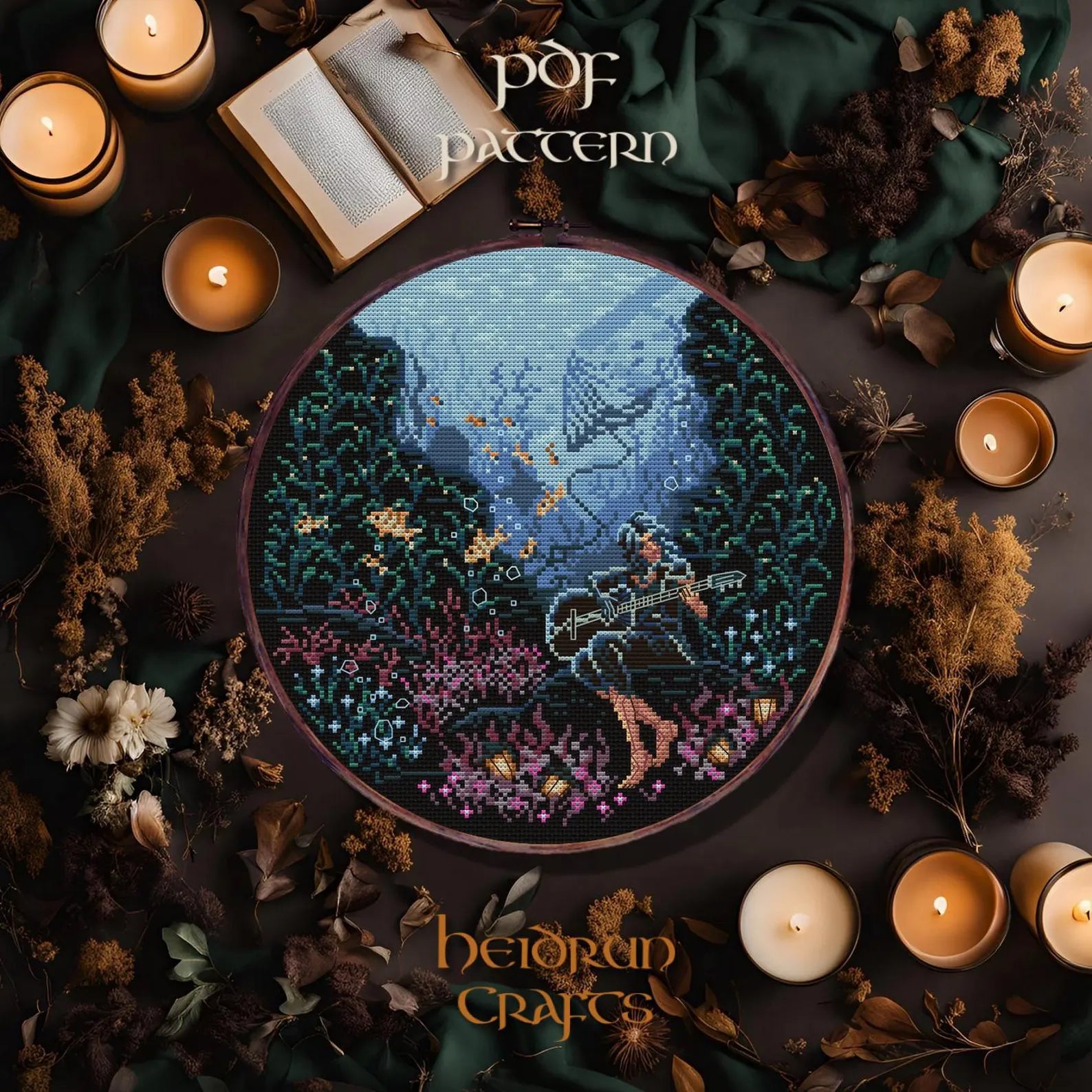 Peaceful, radiant, and filled with quiet magic, this piece evokes themes of reflection, solitude, and beauty beneath the surface. A perfect stitch for fans of the game and lovers of soft fantasy visuals.