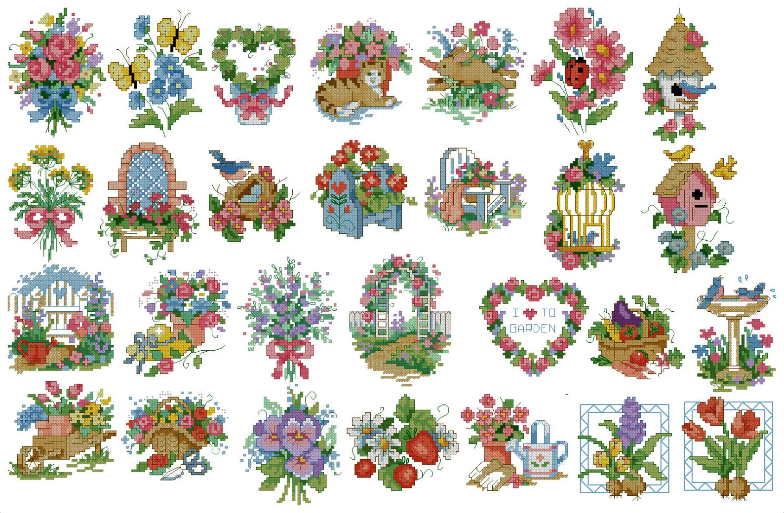 Mini Flowers Cross Stitch Pattern Simple Colorful Art DIY X-stitch Chart Needlepoint Embroidery Chart Printable Instant Download PDF Design